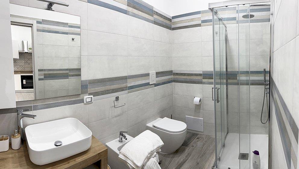 L’appartamento, situato al piano terra, gode di un’ottima esposizione ed è molto luminoso e soleggiato; è nuovo, finemente ristrutturato ed è munito Porta blindata, Napoletane in ferro zincato, Infissi in doppio vetro camera in alluminio, Porte interne a scrigno e a battente, Controsoffittatura con faretti ad incasso a risparmio energetico, Condizionatori a pompa di calore per aria calda e fredda, Boiler (scaldabagno ad accumulo) per acqua calda, Wi-Fi.