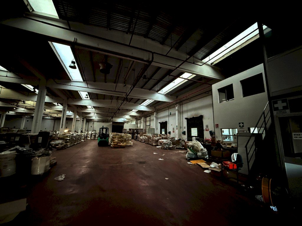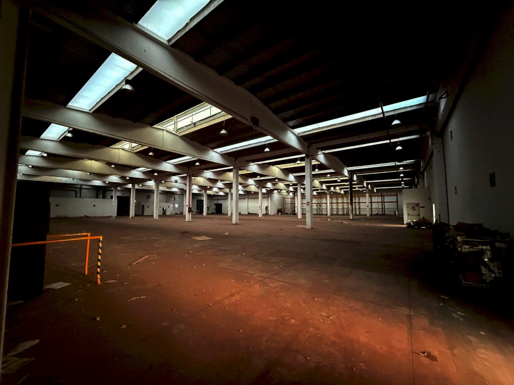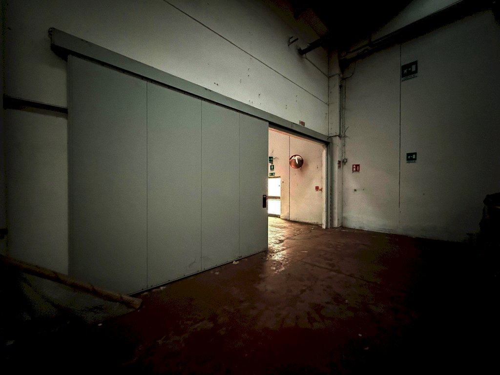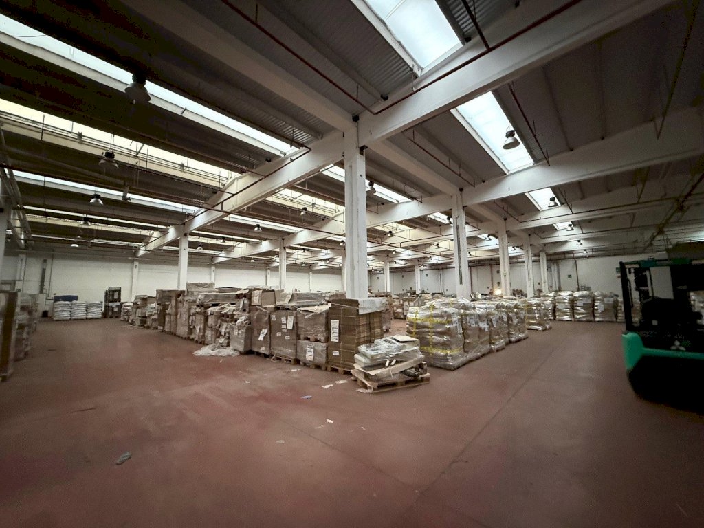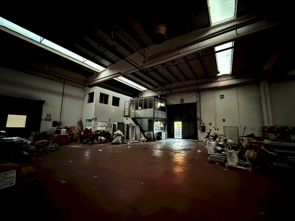 L’immobile è suddiviso in due aree principali; la prima area è di circa 2.600 mq ed è dotata di due portoni, due baie di carico su area esterna e due ribalte; è presente un piccolo ufficio distribuito su due livelli di ca 25 mq per piano, completo di bagno e spogliatoio. All’interno di questa porzione è presente un impianto antincendio a sprinkler, una zona magazzino di circa 200 mq. con area refrigerata ed una porta tagliafuoco che lo divide dalla seconda area di circa 2.900 mq accessibile tramite due portoni alti 4,5 metri.