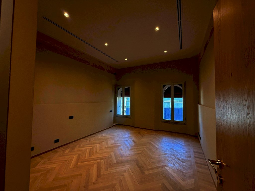 In pieno centro storico, con ingresso da via Pescherie ed affaccio su Piazza Maggiore, proponiamo in locazione immobile ad uso ufficio posto al primo piano, per un totale di mq 240, completamente ristrutturato, sito in Palazzo Dè Banchi.