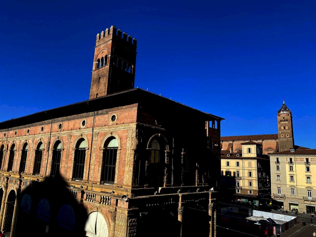 In pieno centro storico, con ingresso da via Pescherie ed affaccio su Piazza Maggiore, proponiamo in locazione immobile ad uso ufficio posto al primo piano, per un totale di mq 240, completamente ristrutturato, sito in Palazzo Dè Banchi.