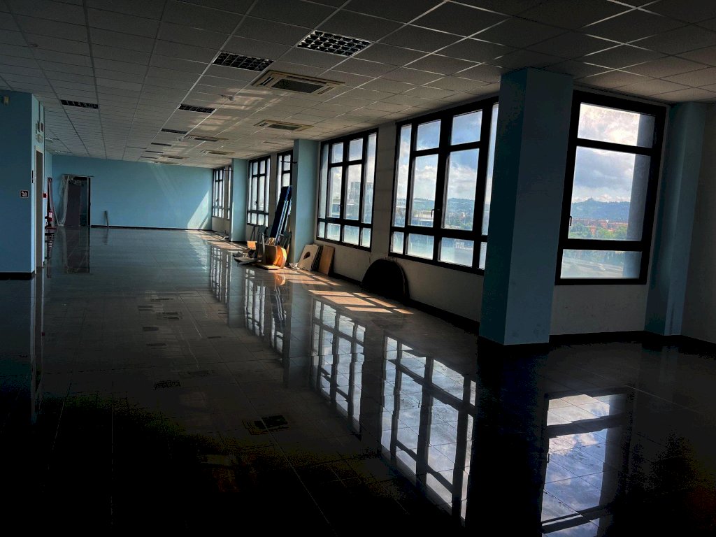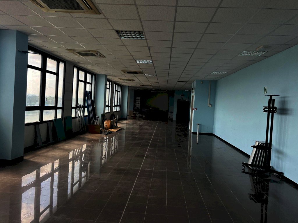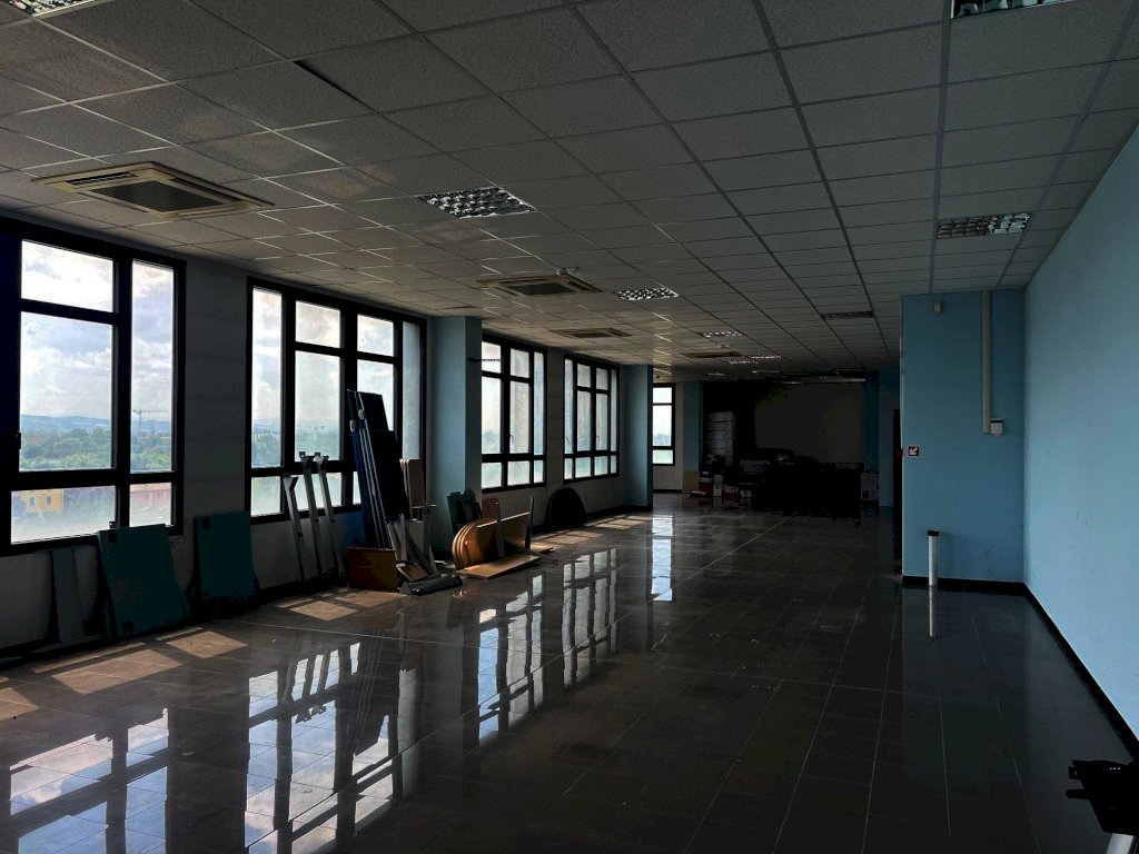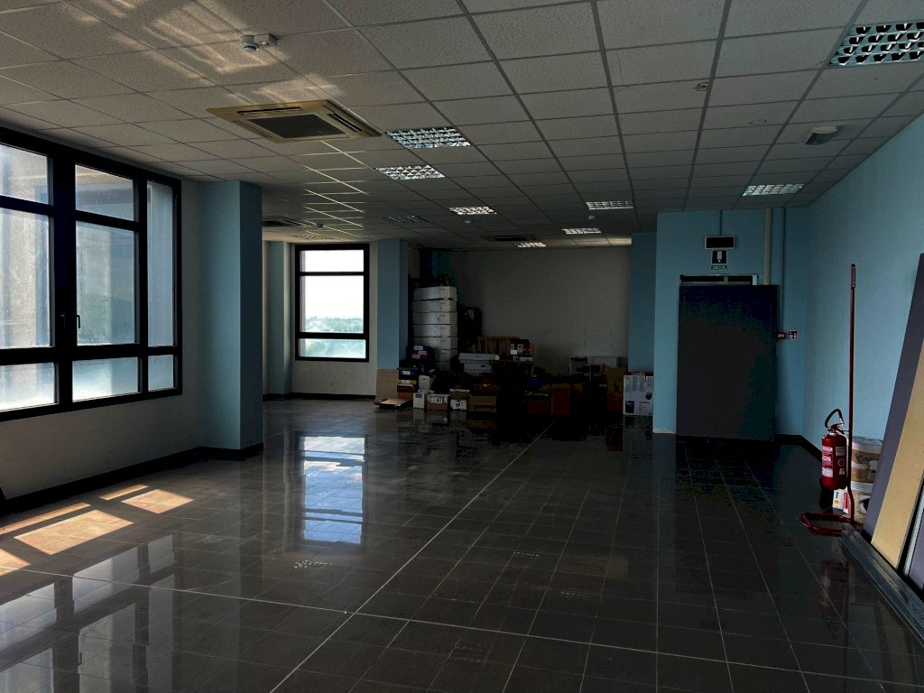 In palazzo direzionale di recente costruzione, fronte autostrada e tangenziale, affittasi 2 uffici di rappresentanza di 250 mq ciascuno, siti al quinto piano dotati di due ascensori, eventualmente unibili.