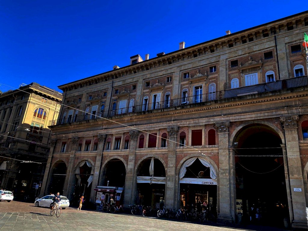 In pieno centro storico, con ingresso da via Pescherie ed affaccio su Piazza Maggiore, proponiamo in locazione immobile ad uso ufficio posto al primo piano, per un totale di mq 240, completamente ristrutturato, sito in Palazzo Dè Banchi.