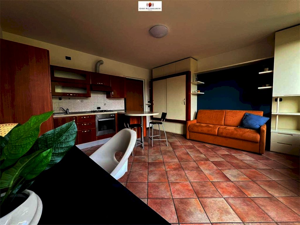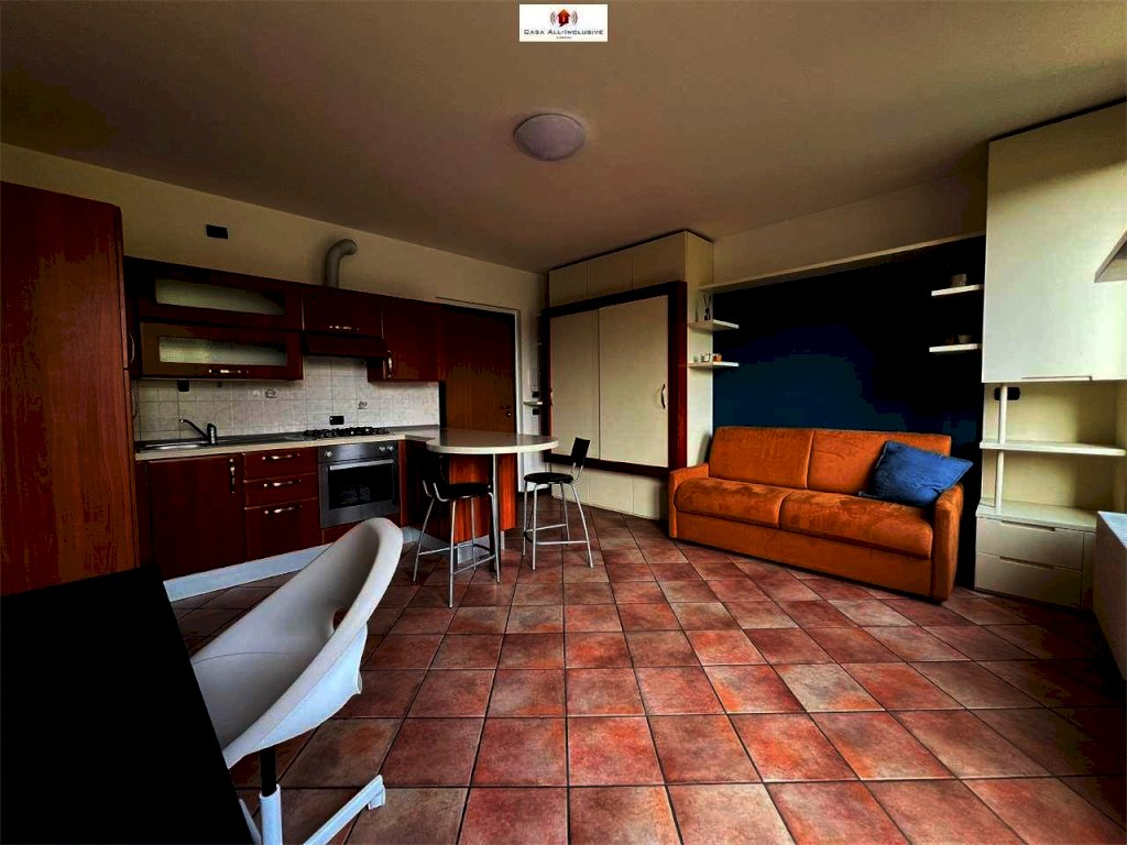 a due passi dal centro, nelle vicinanze supermercato, negozi, fermata bus e principali servizi. L'appartamento รจ arredato con cura e completo di tutti gli elettrodomestici (frigorifero, forno, lavatrice, ecc.). Pronto per essere abitato. Composto da un locale open space, disimpegno e bagno;