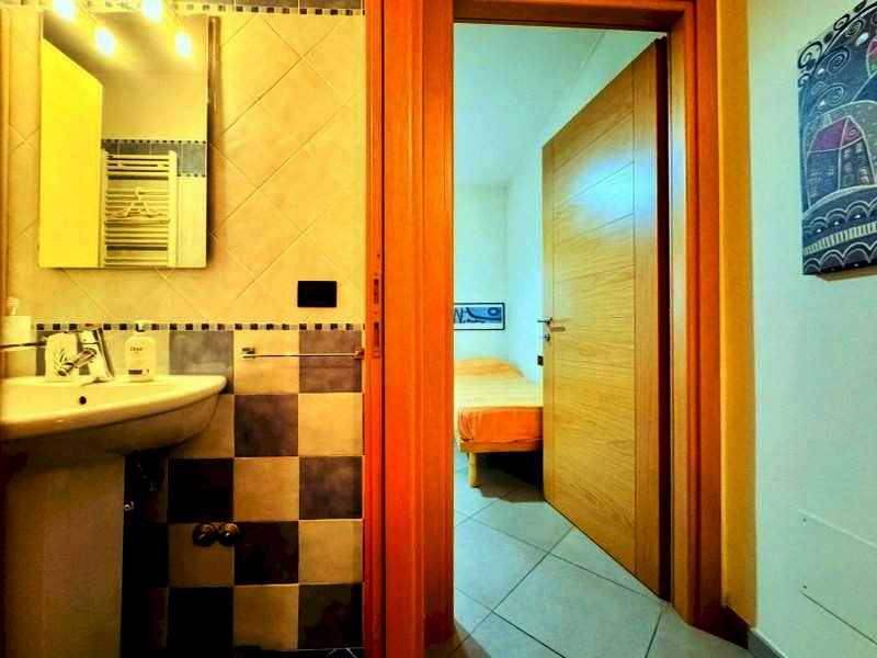 L'ingresso all'abitazione avviene nella zona giorno suddivisa in angolo cottura, sala pranzo e zona TV. Attraverso la porta a finestra si fuoriesce sulla terrazza con vista sul parco limitrofo. Percorrendo il corridoio si raggiunge la zona notte. Le camere da letto sono due, una matrimoniale (2 pax) ed una doppia (2 pax). I bagni di cui possono servirsi gli ospiti sono due.
