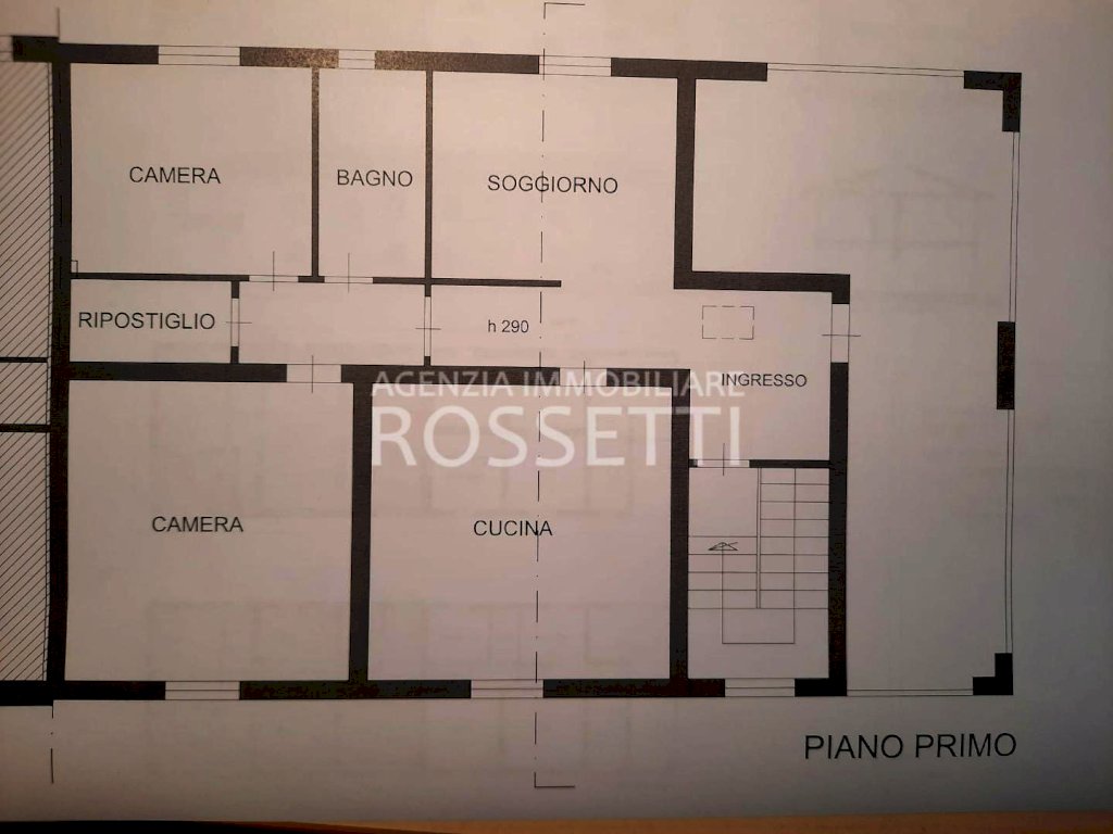 Accesso da strada privata e scala interna esclusiva per il piano primo su ingresso e tramite porta-finestra alla bellissima terrazza attrezzata con barbecue, lavello e lavatrice, ampia cucina-pranzo, soggiorno, due camere matrimoniali, ripostiglio e bagno.