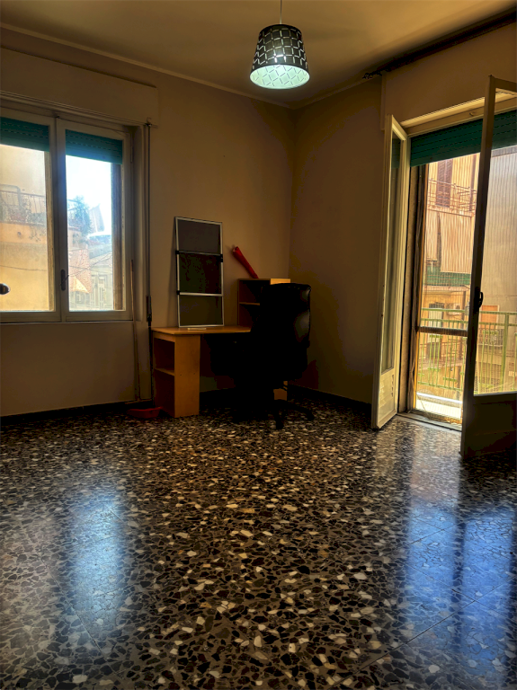 Gli ambienti sono così distribuiti: ingresso, soggiorno, cucina, camera da letto, cameretta, bagno ripostiglio e due balconi.