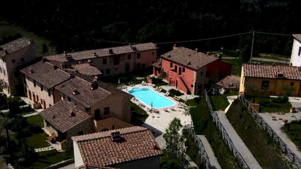 IMMERSA NEL VERDE, L'ANTICO BORGO È SITUATO NEL CUORE DELLA TOSCANA, TRA MONTAIONE E GAMBASSI TERME, A POCHISSIMI KM DA SAN GIMIGNANO.