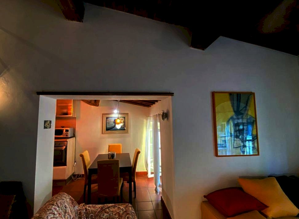 moderni che creano un'atmosfera veramente accogliente. Al suo interno troviamo un comodo soggiorno con lato tv e lettura. Un arco divide il soggiorno dalla zona pranzo e dal cucinotto che e' attrezzato