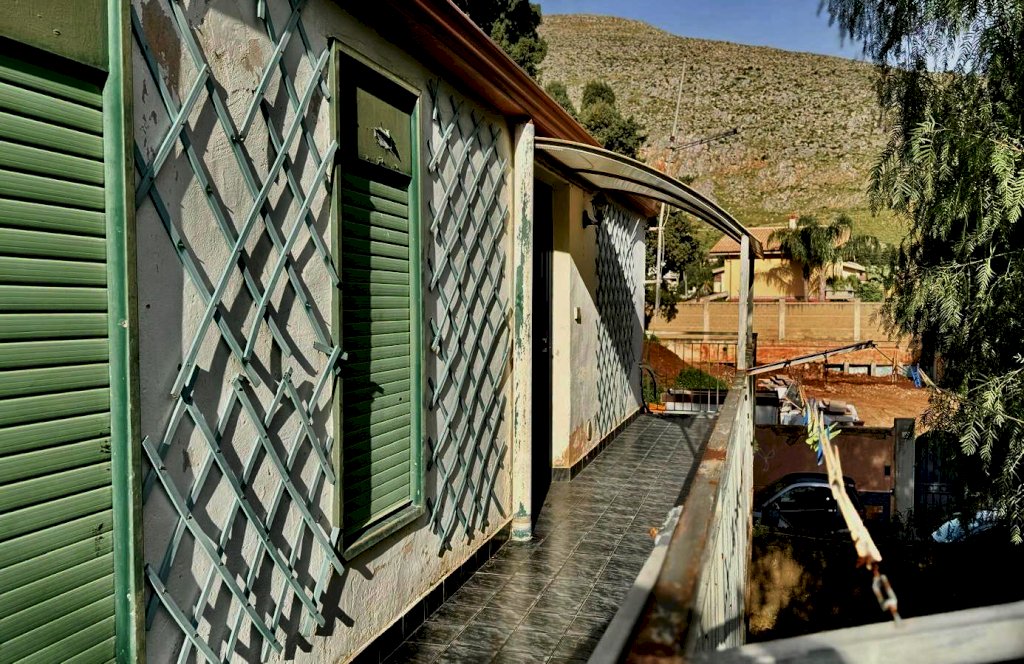 L’ingresso avviene dal piano terra tramite cancello e scala esterna che conduce ad un lungo balcone condiviso, dal quale si accede alle abitazioni situate al primo piano.