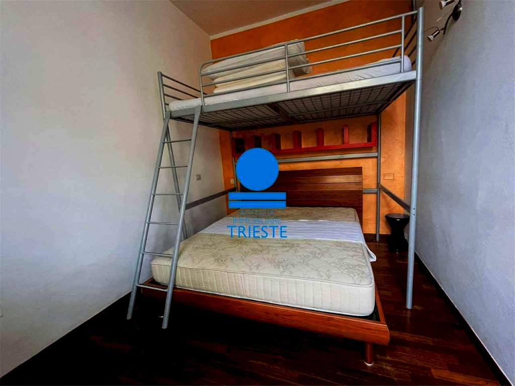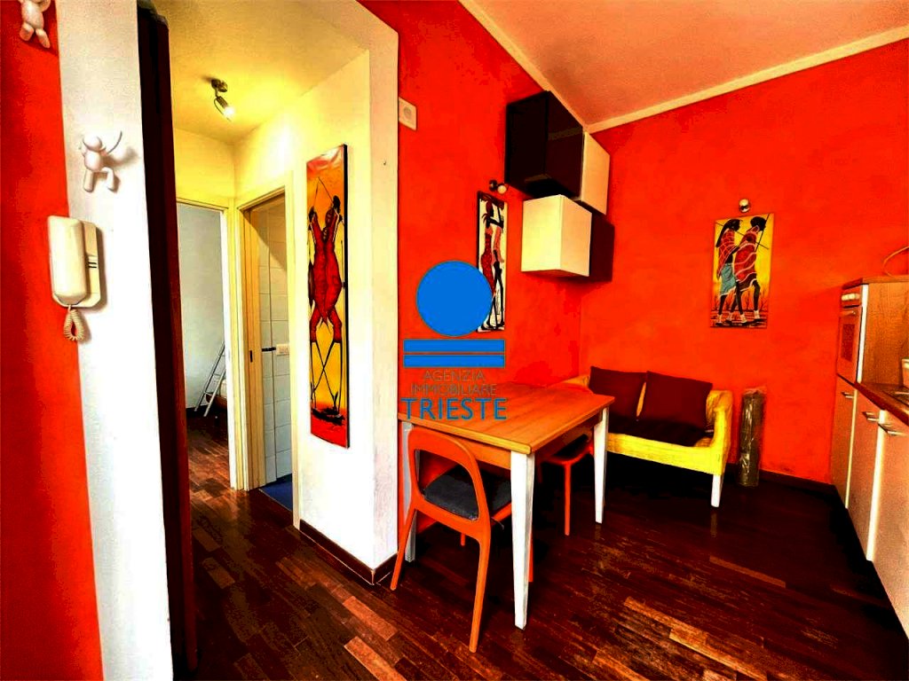 L'AGENZIA IMMOBILIARE TRIESTE propone in affitto transitorio un comodo e accogliente appartamento, disponibile da Settembre 2025 a Maggio 2026. L'immobile è situato al piano terra con ingresso indipendente e si compone di un cucinotto completamente attrezzato con tavolino da pranzo, un bagno ristrutturato con box doccia, e una camera matrimoniale dotata di un comodo letto rialzato per un bambino. Inoltre, l'appartamento offre aria condizionata e una lavatrice per garantire un soggiorno confortevole. All'interno del cancello condominiale è possibile parcheggiare una bicicletta in sicurezza.