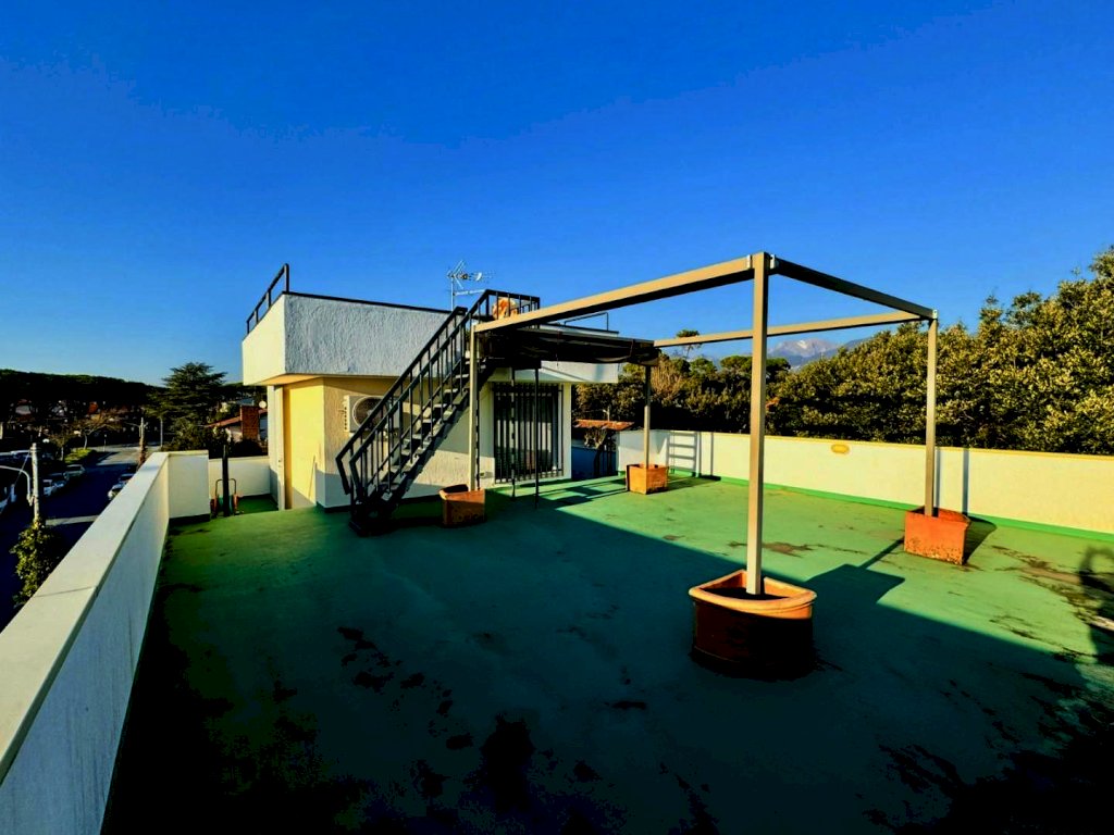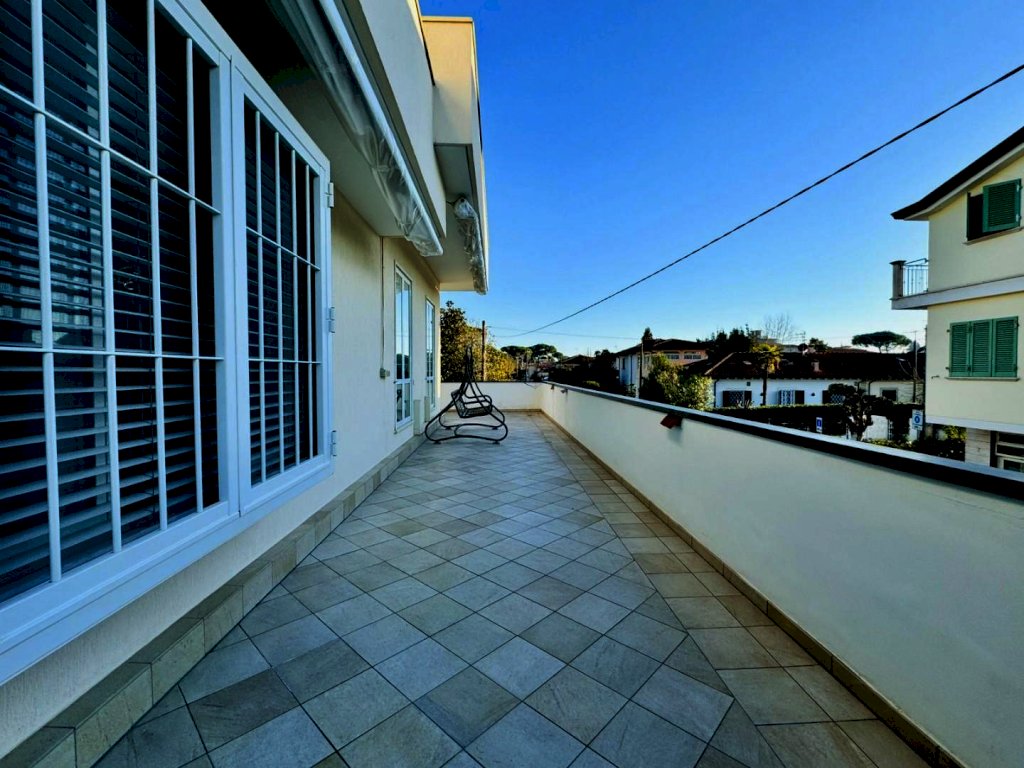 A poco più di 300 metri dal mare e dalla spiaggia di Marina di Pietrasanta, in località Tonfano, è disponibile per i mesi di agosto e settembre 2026 una casa vacanza su due livelli corredata da terrazze.