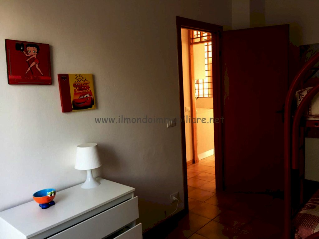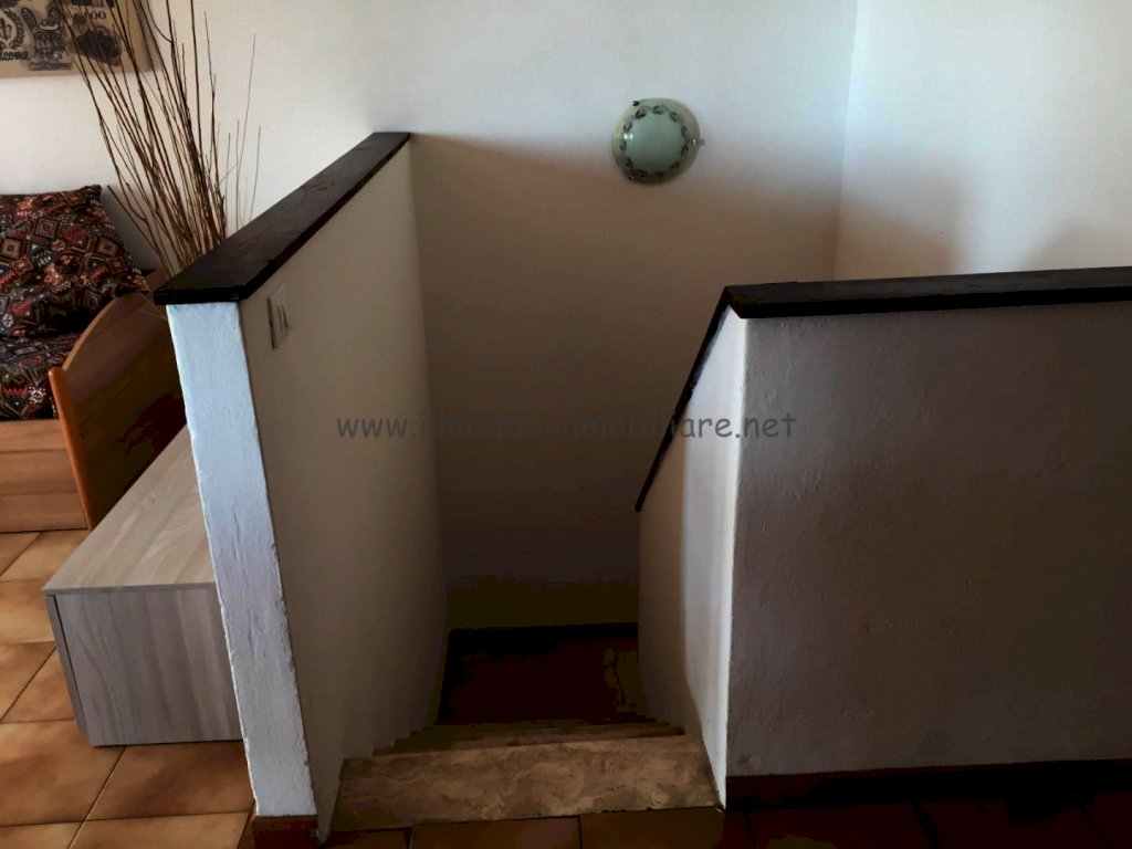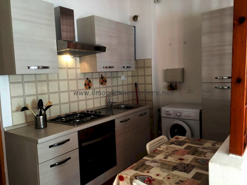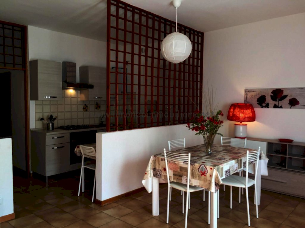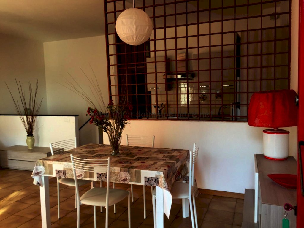 Appartamento al piano rialzato composto da: gtìrande zona giorno con angolo cottura a vista, balcone con doppio accesso dalla zona giorno, tavolo da pranzo in soggiorno con divano letto, tavolo colazione nell'angolo cottura, camera matrimoniale, camera con letto a castello, bagno con vasca e finestra; collegamento interno con taverna finestrata