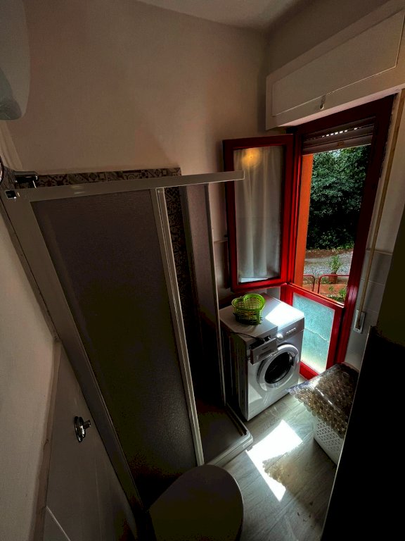 Completa il tutto un giardino attrezzato con tavolo e sedie a cui si accede tramite pochi scalini dalla scala di accesso condominiale.