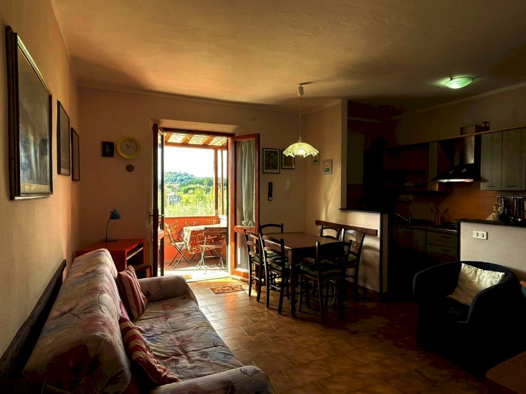 CONTRATTI BREVE DURATA (TRANSITORI) - LIBERO DAL 1° APRILE 2026 In posizione strategica, a breve distanza dal centro, proponiamo in affitto un appartamento indipendente al primo ed ultimo piano di una casa. L'accesso avviene tramite una scala esterna che conduce a un esclusivo terrazzino con vista panoramica. L'immobile offre un ampio soggiorno/pranzo con cucinotto e divano letto. Un disimpegno con piccola cabina armadio porta a un bagno con doccia oltre che ad una piccola stanza dove è stato inserito un letto singolo. L'affitto include già le spese per elettricità, acqua e gas per il piano cottura e acqua calda. Il riscaldamento (stufa a pellets e/o termosifoni) è a carico dell'inquilino.