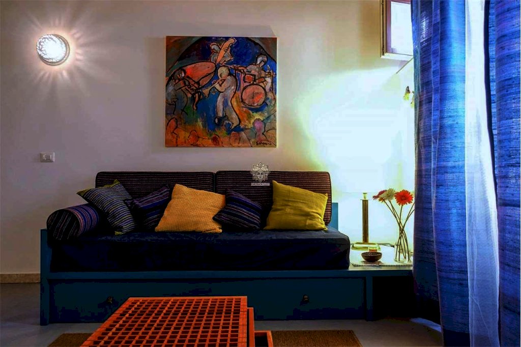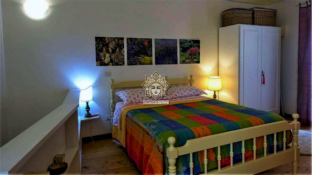 Questa casa vacanze in affitto su due livelli dispone di un soggiorno living con cucina a vista e un ampia e comoda camera da letto matrimoniale su il soppalcato al quale si accede da una scala.