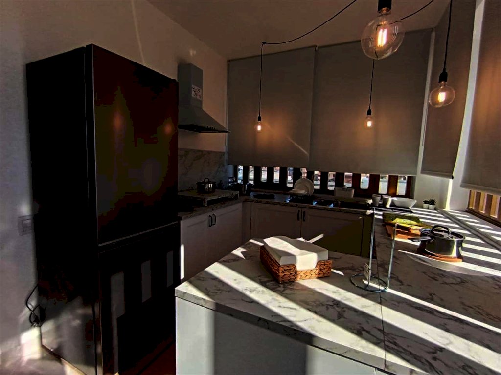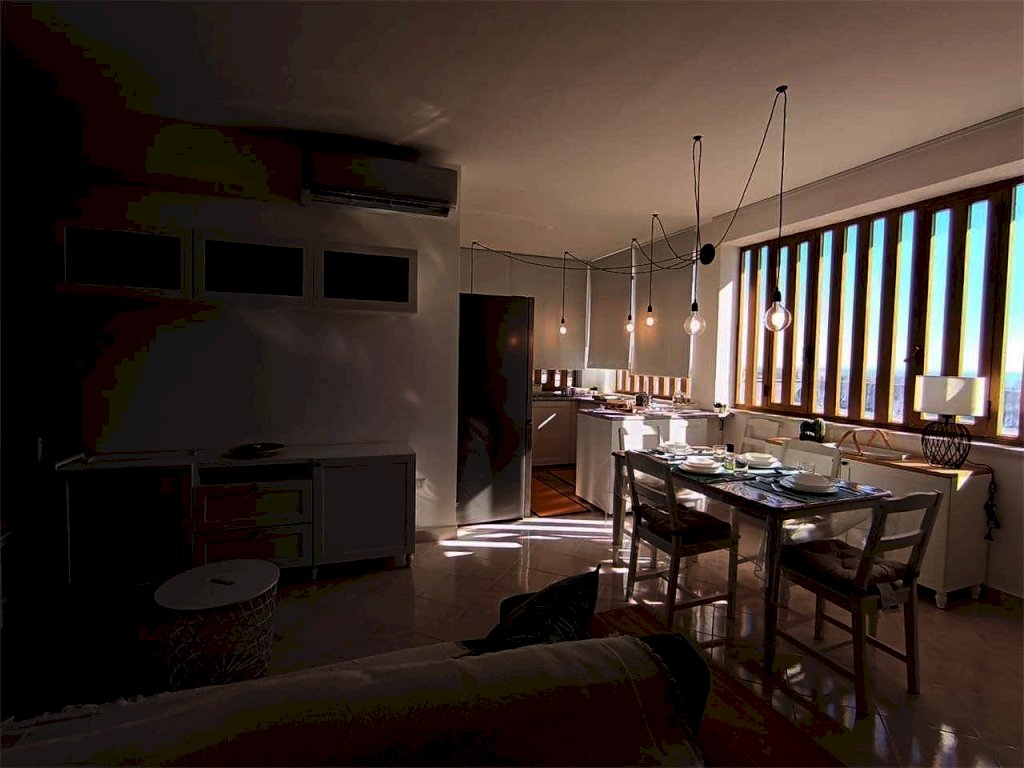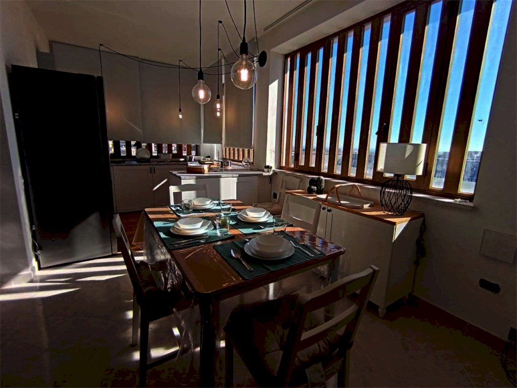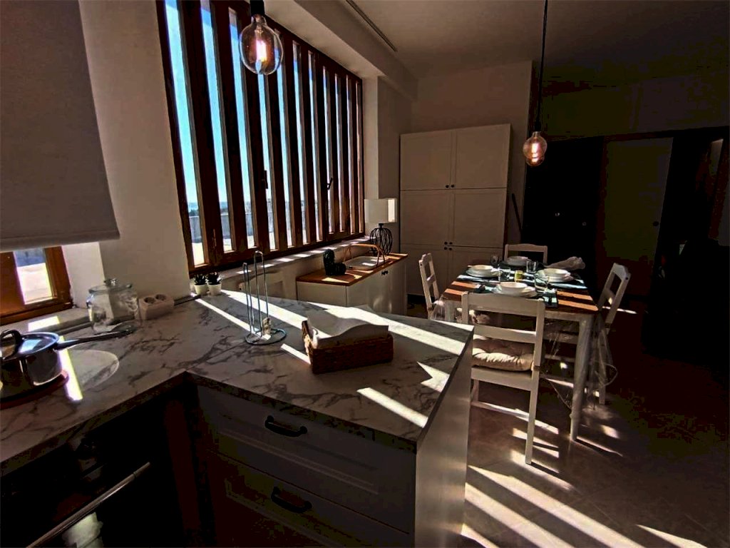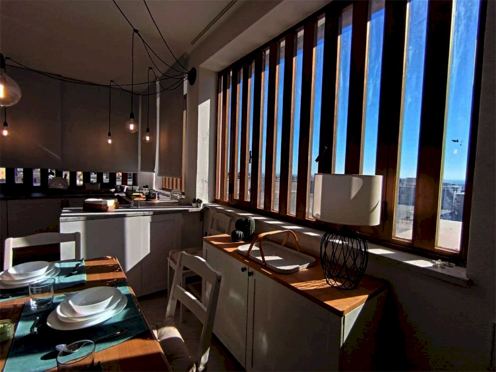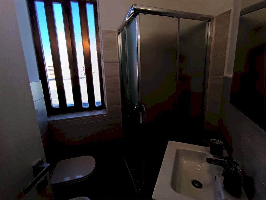 Il bivani di 55 mqc si trova al quinto e ultimo piano di un edificio con ascensore e posti auto liberi e recintati. Internamente la casa ha cucina soggiorno con finestre e accesso alla terrazza a livello, camera da letto matrimoniale con finestre, bagno con doccia e finestra, grande terrazza a livello, posto auto libero recintato.