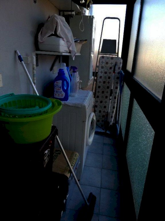 Cucinotto, con tavolo per colazione, con accesso a terrazzo di servizio con pilozzo e veranda chiusa per lavatrice ed attrezzature per la casa.
