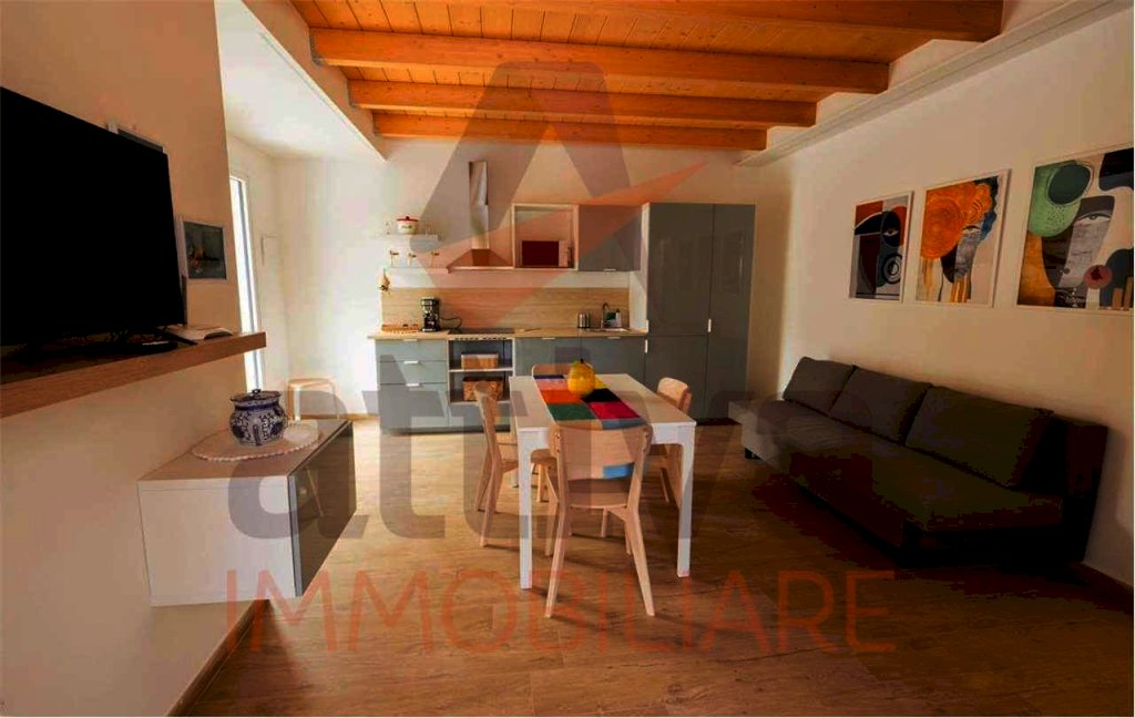 Posto al piano terra, si compone di zona giorno, disimpegno, camera matrimoniale con bagno privato, cameretta e bagno. Completa la proprietà, l'utilizzo comune del giardino esterno (non recintato).