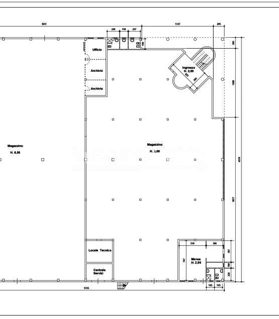 L'immobile a pianta rettangolare , la struttura è su pilastri, è composto da unico vano open space di mq.1100 .