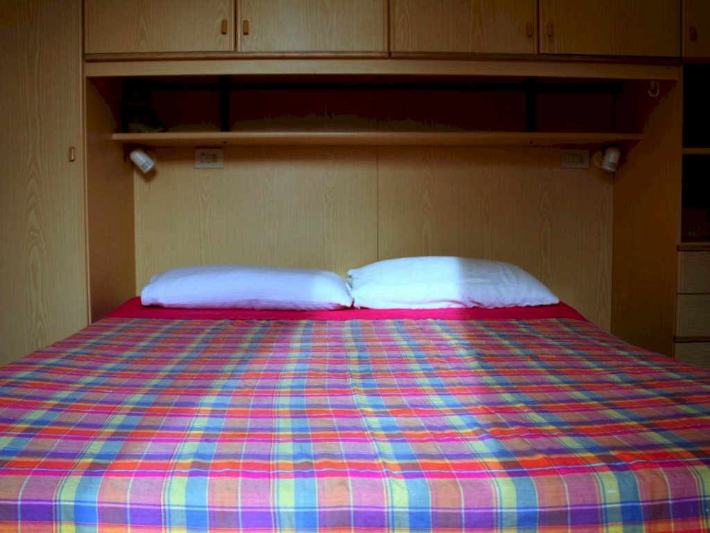 L'ingresso avviene nella zona giorno organizzata in angolo cottura, sala pranzo e zona TV. Questo ambiente dispone di una poltrona letto (1 pax). La camera è matrimoniale e può ospitare due persone. Bagno servito da doccia.