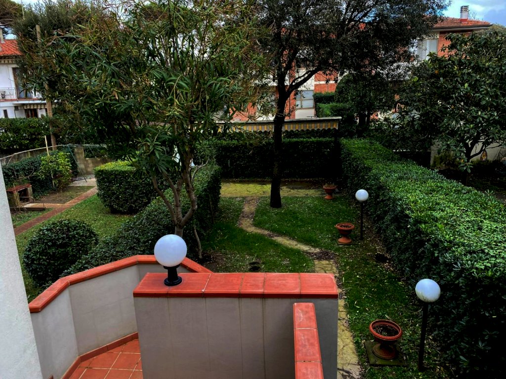 TIRRENIA - ubicato in zona residenziale e non trafficata, app.to in quadrifamiliare con ingresso indipendente da giardino esclusivo perfettamente tenuto con due psoti auto, gazebo in legno, barbeque e lavello esterno per cene estive. Tramite comoda scala esterna, si accede all'appartamento composto da un comodo soggiorno con balcone, cucina abitabile con balcone, disimpegno notte con una matrimoniale, bagno con vasca e finestra e camera media. Dal soggiorno, mediante scala in legno, si accede allo spazioso sottotetto adibito a mansarda con ulteriori 4 posti letto (due matrimoniali), bagno e piacevolissima terrazza di mq 36. L'immobile in totatel dispone di 8 posti letto. La costruzione dell'immobile risale a metà degli anni '80 ma è tenuto in perfette condizioni, con facciate rifatte, completo di sistema di irrigazione, cancelletti apribili a tutti gli infissi, tende da sole, zanzariere, condizionatore in mansarda, addolcitore. Completamente arredato. Disponibile dal 1 FEBBRAIO 2026. Referenziati.