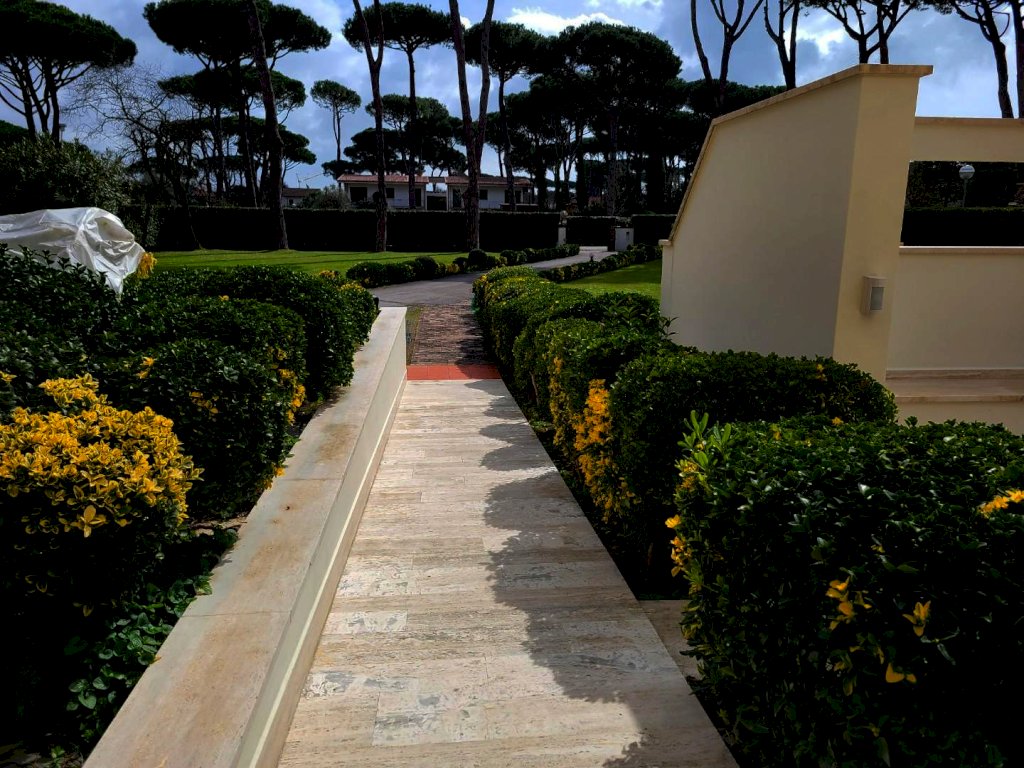 Situata nella prestigiosa ed esclusiva zona di Roma Imperiale è una raffinata residenza anni'70, immersa in un ampio giardino privato di 3.000 mq.