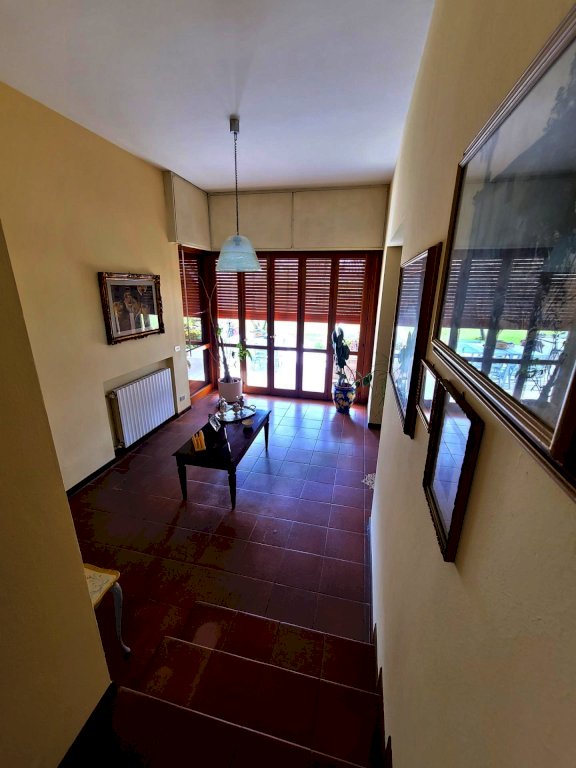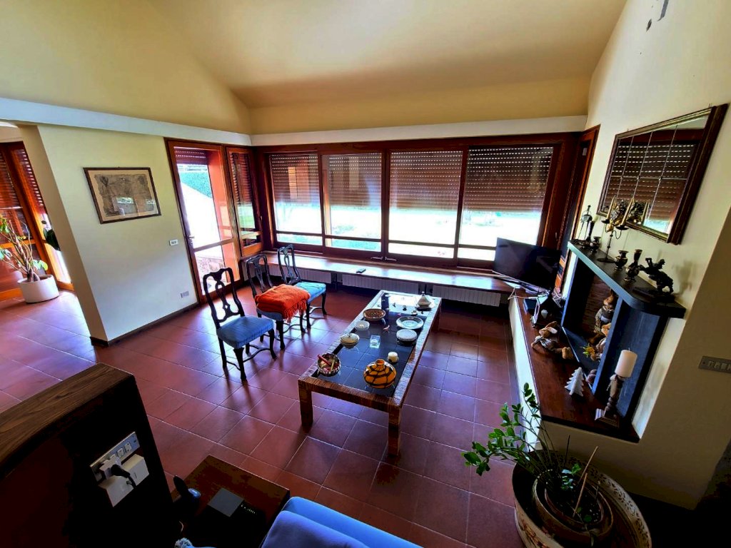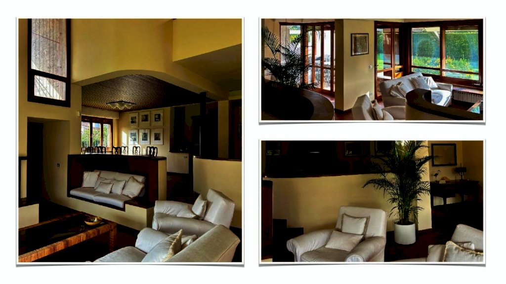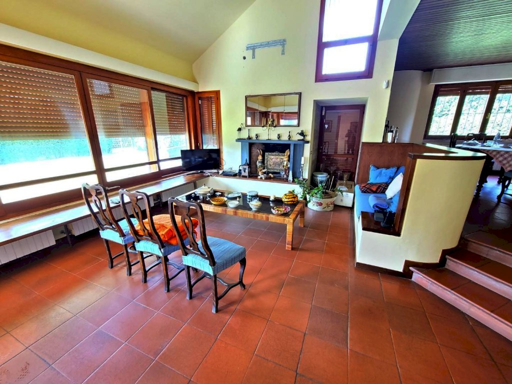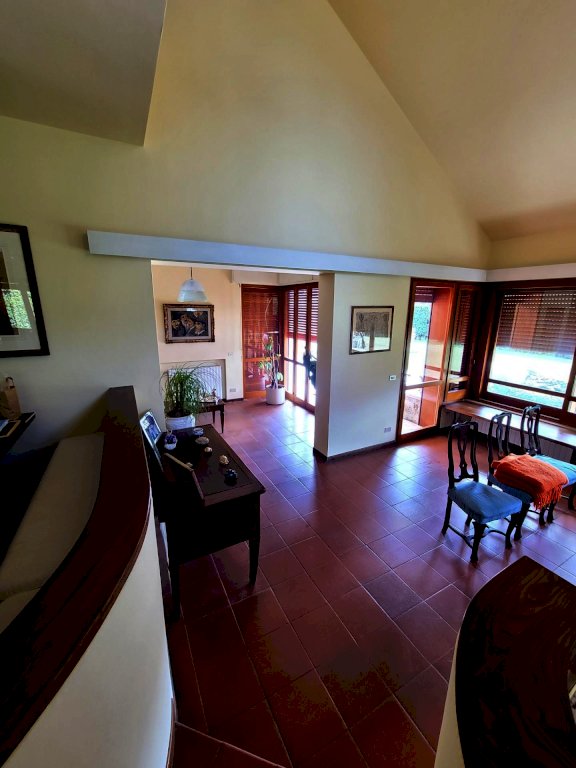 Il piano terra della villa si apre come un ampio spazio su più livelli: