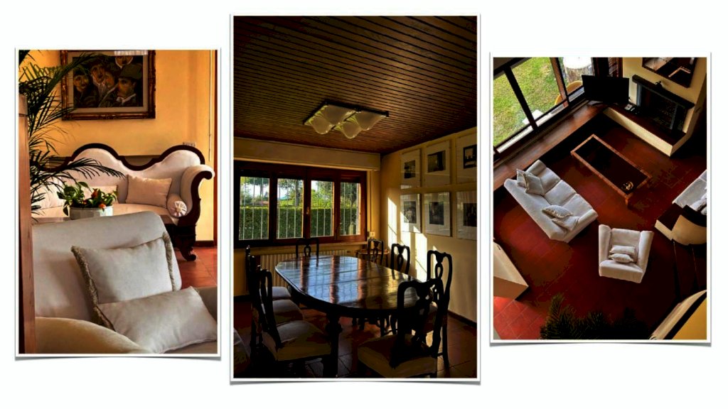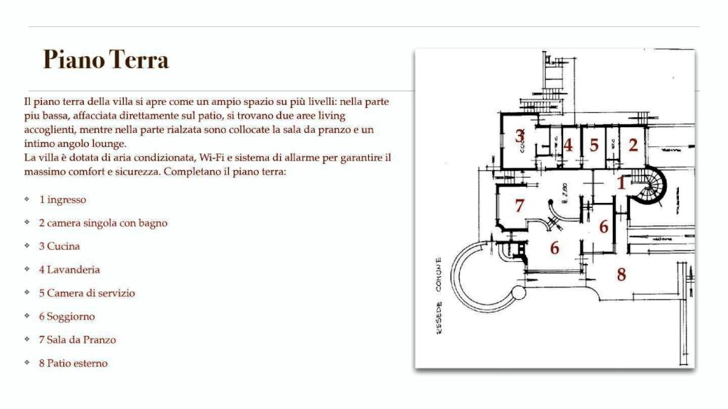 Gli spazi interni, caratterizzati da volumi generosi e arredi classici, tipici di quell’epoca, si aprono su un elegante patio, offrendo un'atmosfera di assoluto relax.