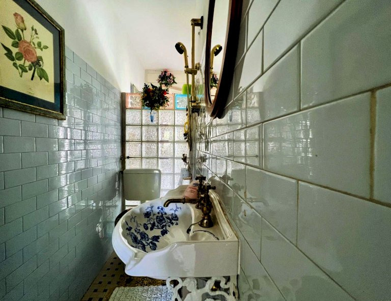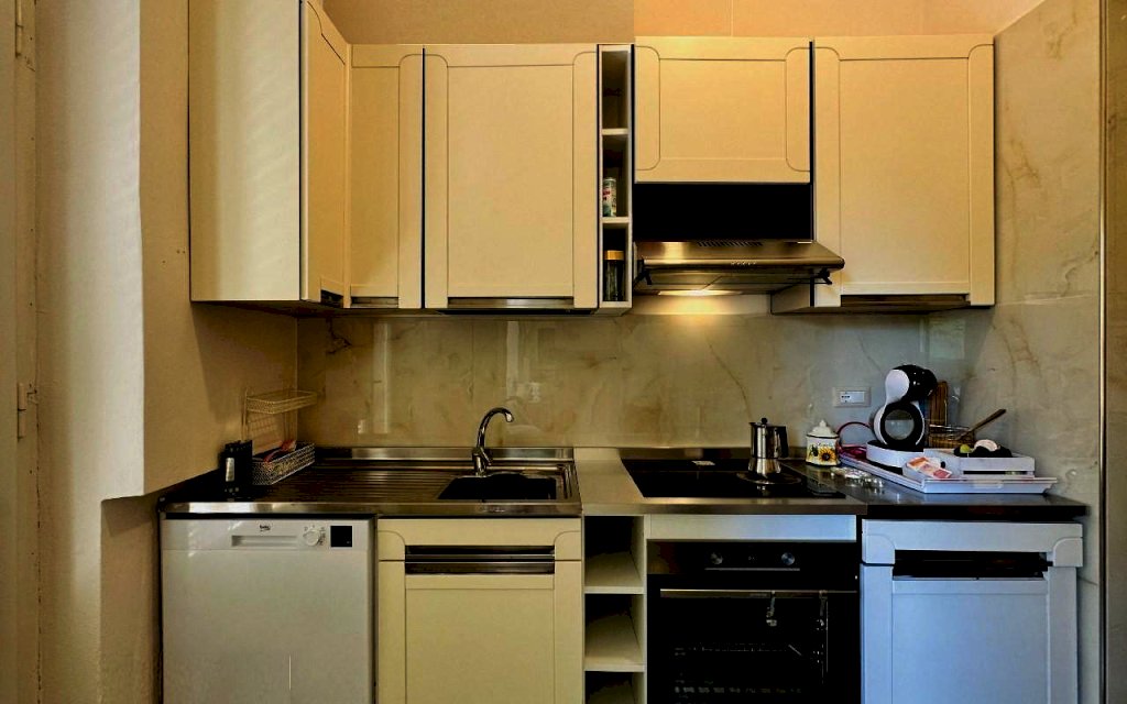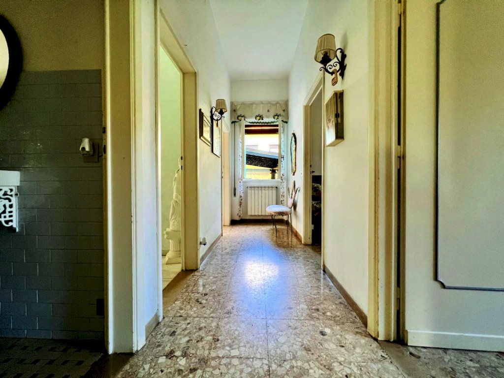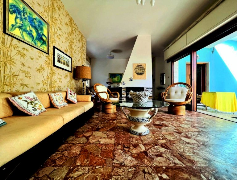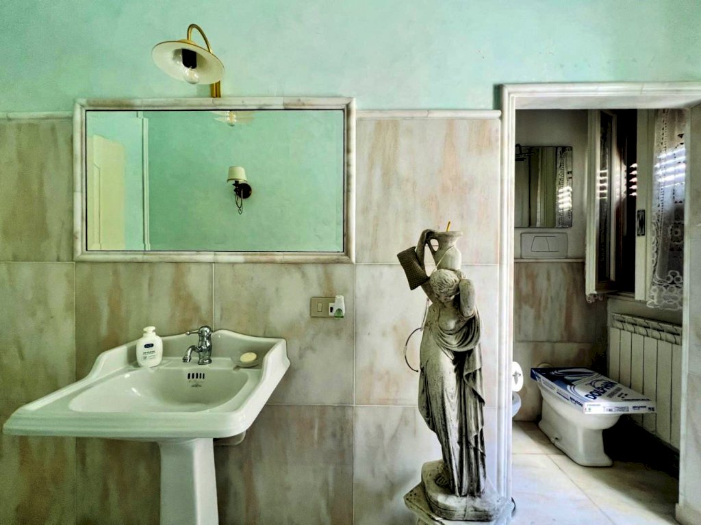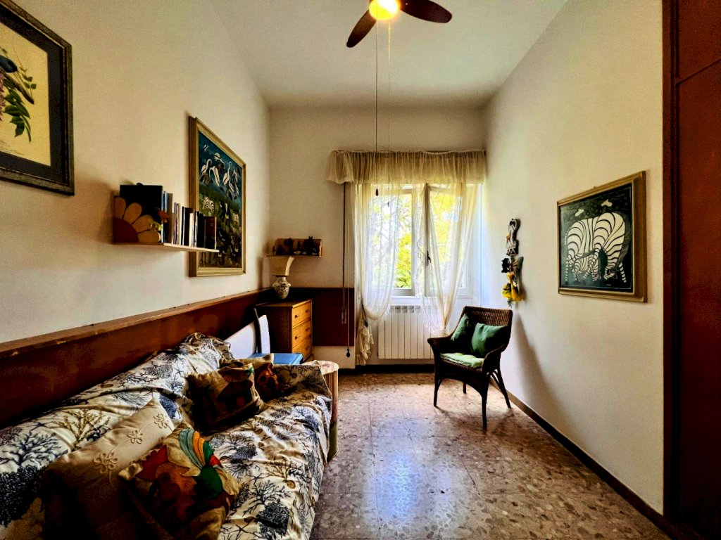L'ingresso all'abitazione avviene tramite disimpegno, direttamente nella luminosa zona giorno con accesso alla veranda esterna, proseguendo trova posto la cucina anch'essa con uscita secondaria sulla resede.