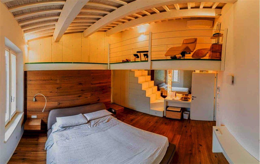Al piano terra si trova un'ampia camera/studio, ideale come ambiente di lavoro o spazio multifunzionale.