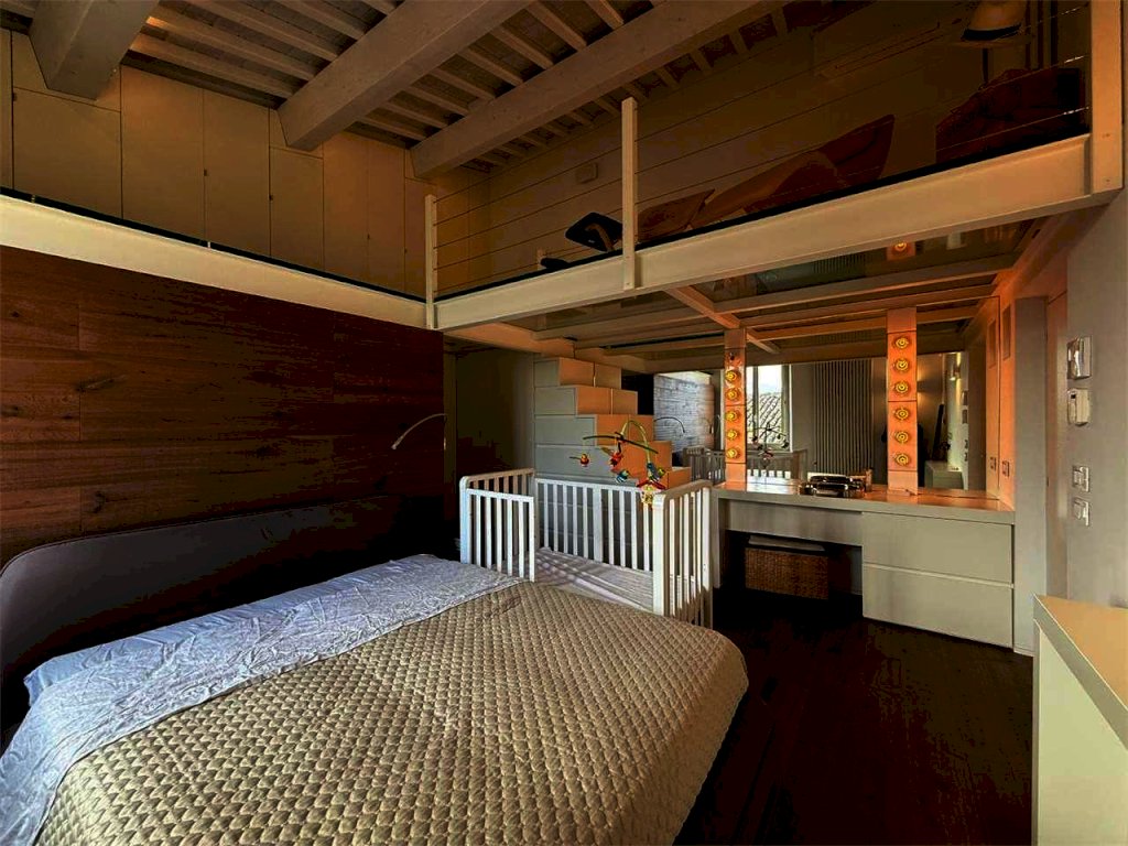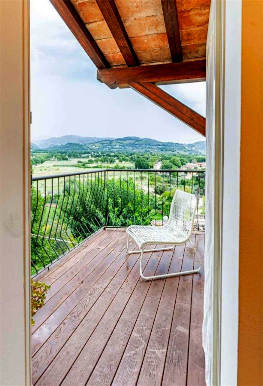 Il secondo piano, impreziosito da soffitti con travi in legno sbiancato a vista, accoglie una grande camera matrimoniale con un suggestivo soppalco, un balcone con una gradevole vista panoramica sulla campagna circostante ed un secondo bagno.