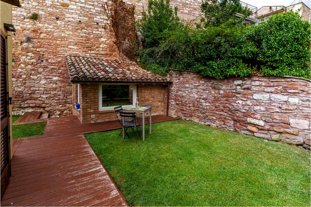 All'interno del caratteristico centro storico di Spello proponiamo in affitto un elegante cielo-terra finemente ristrutturato, della superficie di circa 100 mq distribuiti su tre livelli.
