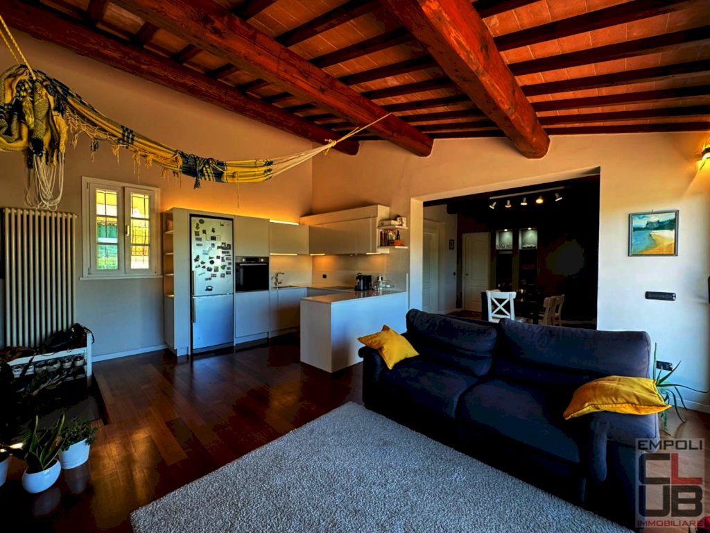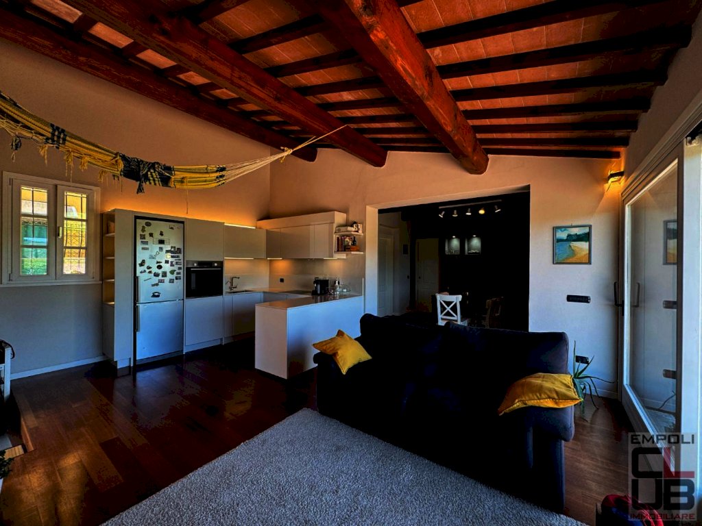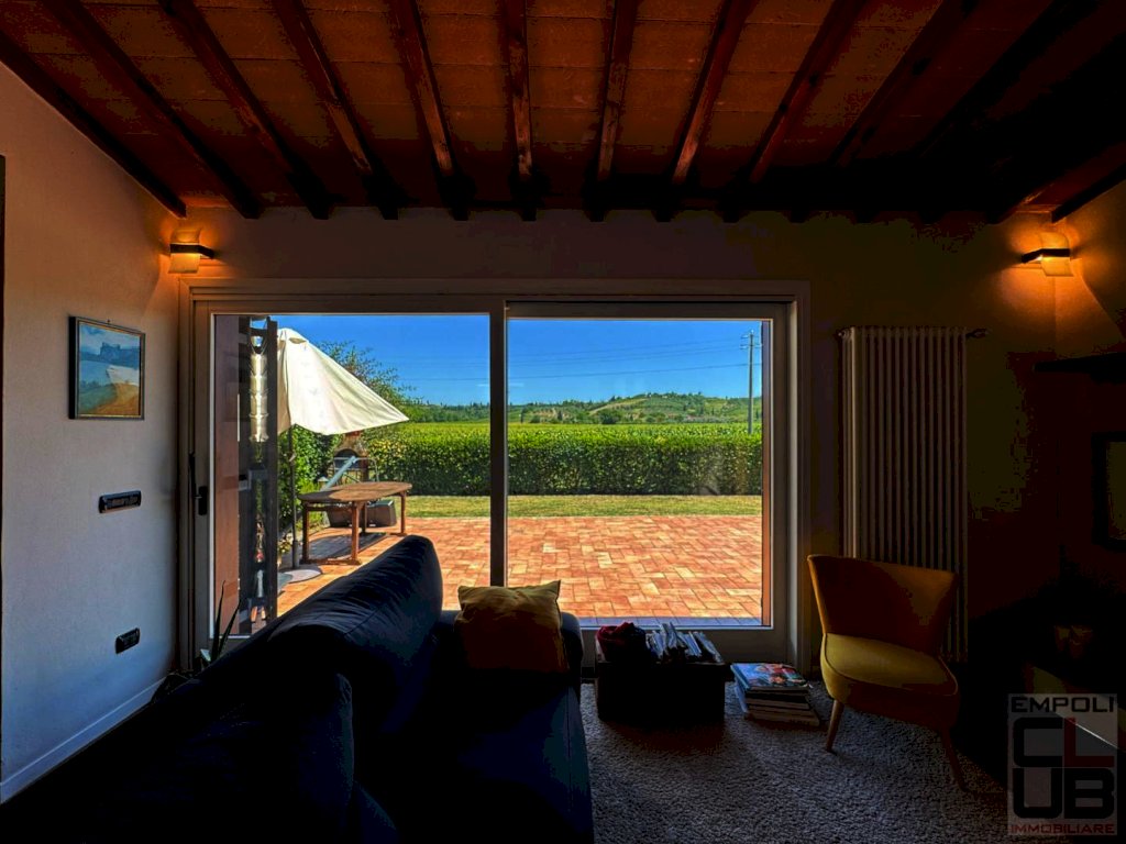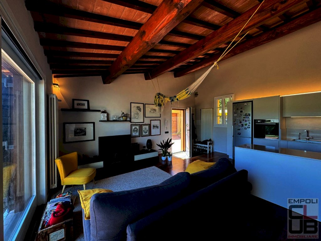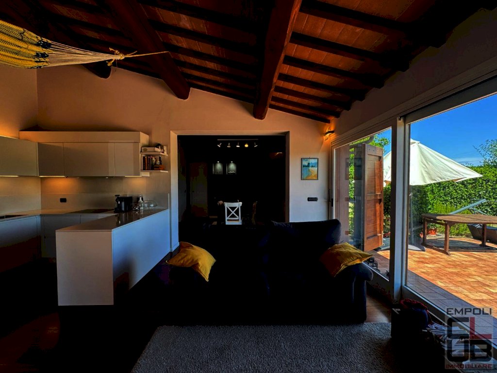 EMPOLI – RIF. M/0623 – NOSTRA ESCLUSIVA - NEI PRESI DI MOLIN NUOVO, ALL’INTERNO DI CARATTERISTICO CASALE TOSCANO RESTAURATO NEL 2001, PORZIONE DI CASA COLONICA DI CIRCA 120 MQ COMPLESSIVI, IN BUONA PARTE LIBERA DA TERRA A TETTO E CORREDATA DI GRANDE GIARDINO ESCLUSIVO DI CIRCA 400 M² OLTRE AD UNA PICCOLA DEPENDANCE (20 MQ CIRCA). L' immobile, aggiornato parzialmente nel 2018, è internamente così composto: ingresso in ampia e luminosa zona giorno con angolo cottura, disimpegno, camera da letto, un primo servizio igienico e ripostiglio; al piano primo, collegato al piano terreno da scala interna, troviamo la zona notte, dove sono collocate due camere da letto e un ulteriore servizio igienico, con finestra a tetto e doccia walk-in. Esternamente, staccata dal fabbricato principale, accogliente dependance (urbanisticamente locale pluriuso/ripostiglio/bagno) di circa 20 mq dove si trovano un terzo bagno, una zona adibita a lavanderia ed un locale soppalcato. Il giardino, davvero ampio e godibilissimo, è in parte pavimentato ed in parte dedicato al parcheggio delle auto, in quanto accessibile da cancello automatico. L’ immobile è rivestito per la quasi totalità della sua superficie da un caldo parquet di vero legno ed è caratterizzato da travi in castagno massiccio. Il soggiorno vi affascinerà, grazie ad una ampia vetrata che si affaccia sul giardino privato e sulle colline circostanti e che vi regalerà autentici momenti di relax contemplativo. Vi innamorerete di questa splendida casa, incorniciata nel verde e nella quiete della campagna toscana ma ad un passo dai principali servizi cittadini, con la stazione ferroviaria di Empoli raggiungibile in soli 15 minuti di auto circa, mentre sono necessari circa 40 minuti di auto per l’ aeroporto internazionale di Pisa e circa 45 minuti di auto per Firenze Porta al Prato. Immobile in condizioni eccellenti, parzialmente arredato. Richieste referenze dimostrabili oltre a fidejussione bancaria. Prenotate quanto prima la vostra visita!!! Classe energetica: G - ipe 160,00 - Rif. M/0623 - euro 1500,00