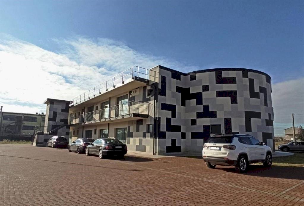 L'ufficio è dotato di bagno, antibagno e ripostiglio, e dispone di un ampio spazio esterno adibito a parcheggio.