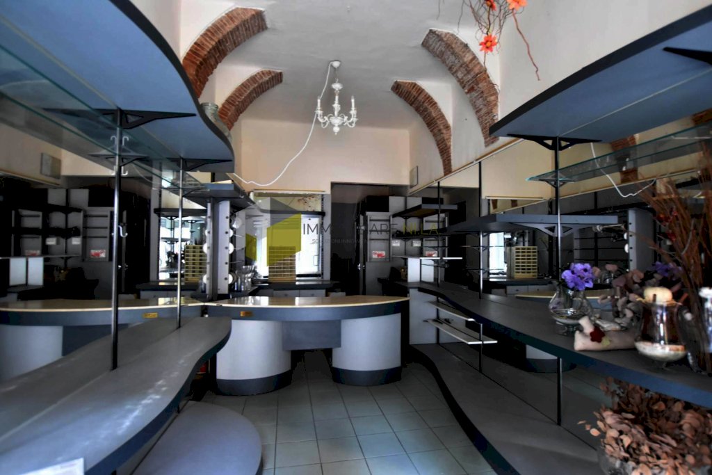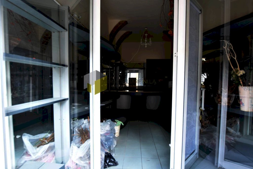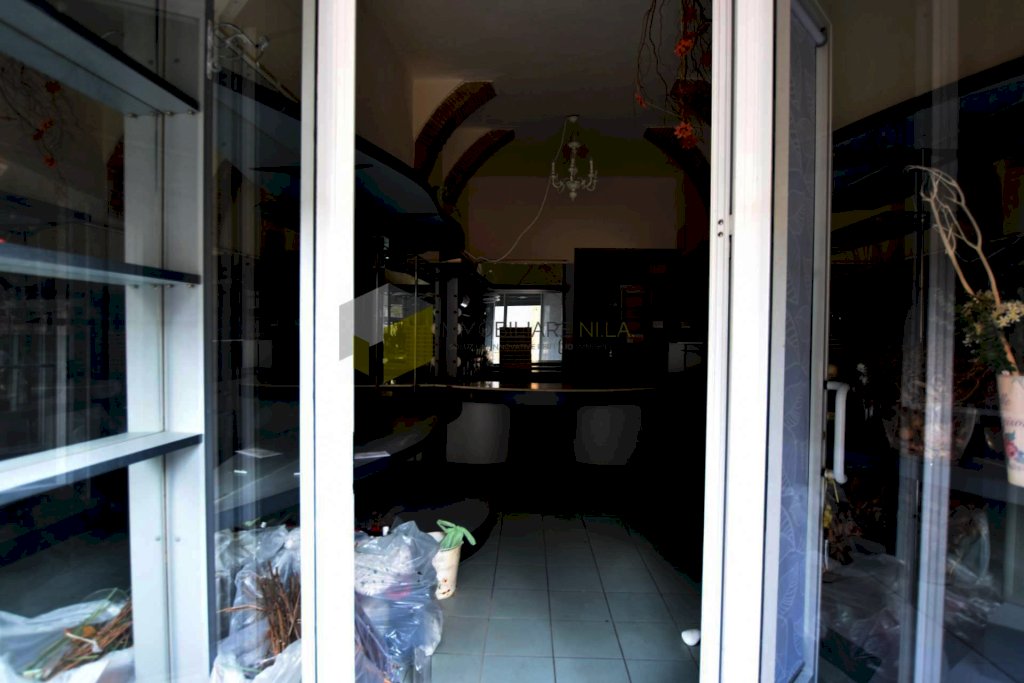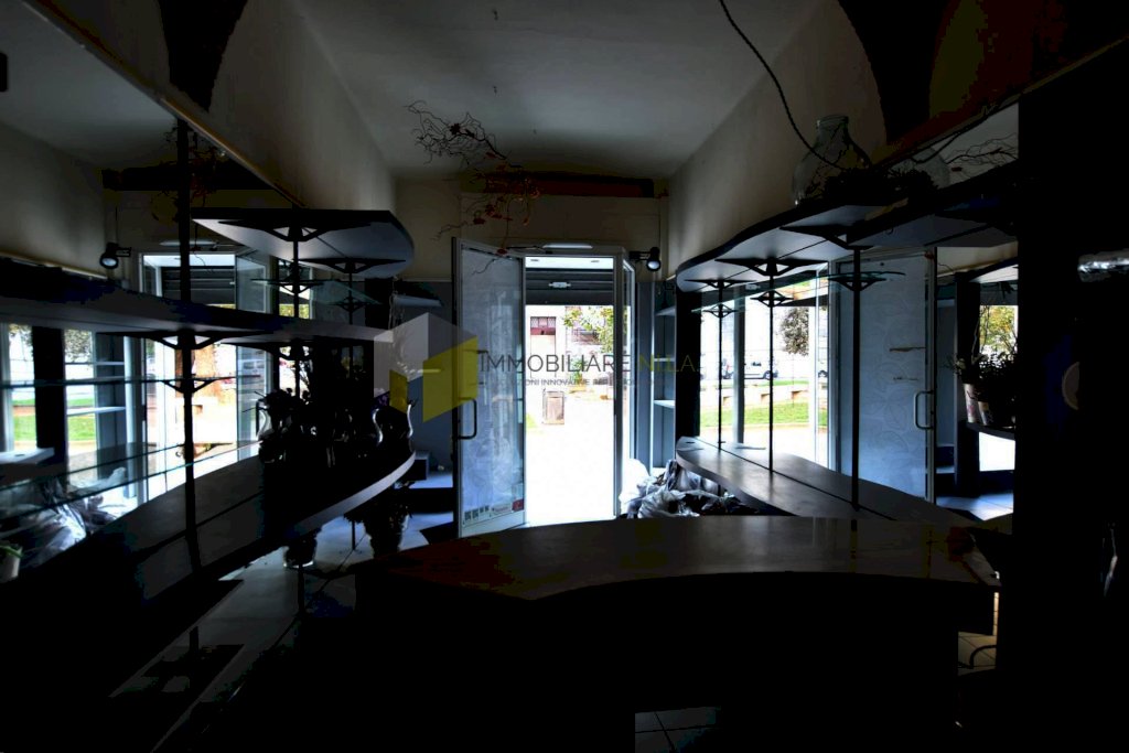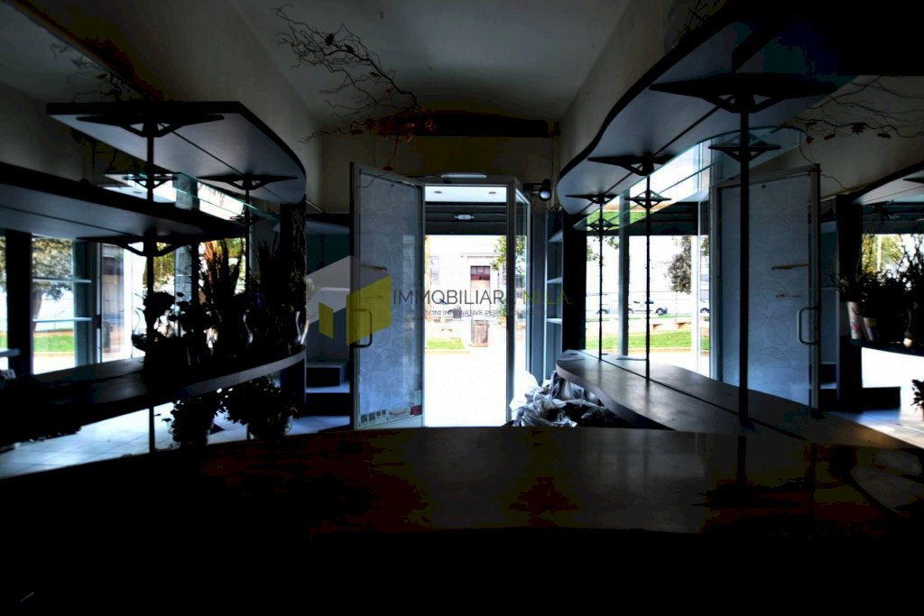 L'ingresso è nell'area destinata alla vendita, la quale gode di due vetrine poste lateralmente alla porta di ingresso. Attraverso un piccolo disimpegno si raggiunge il bagno senza finestra.