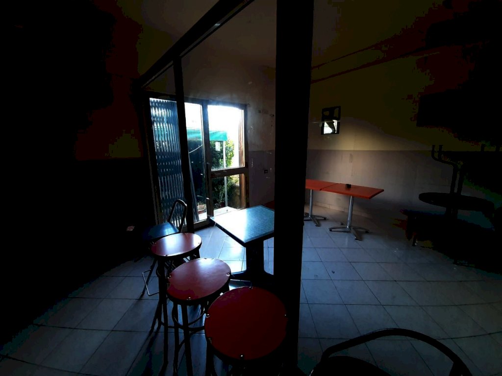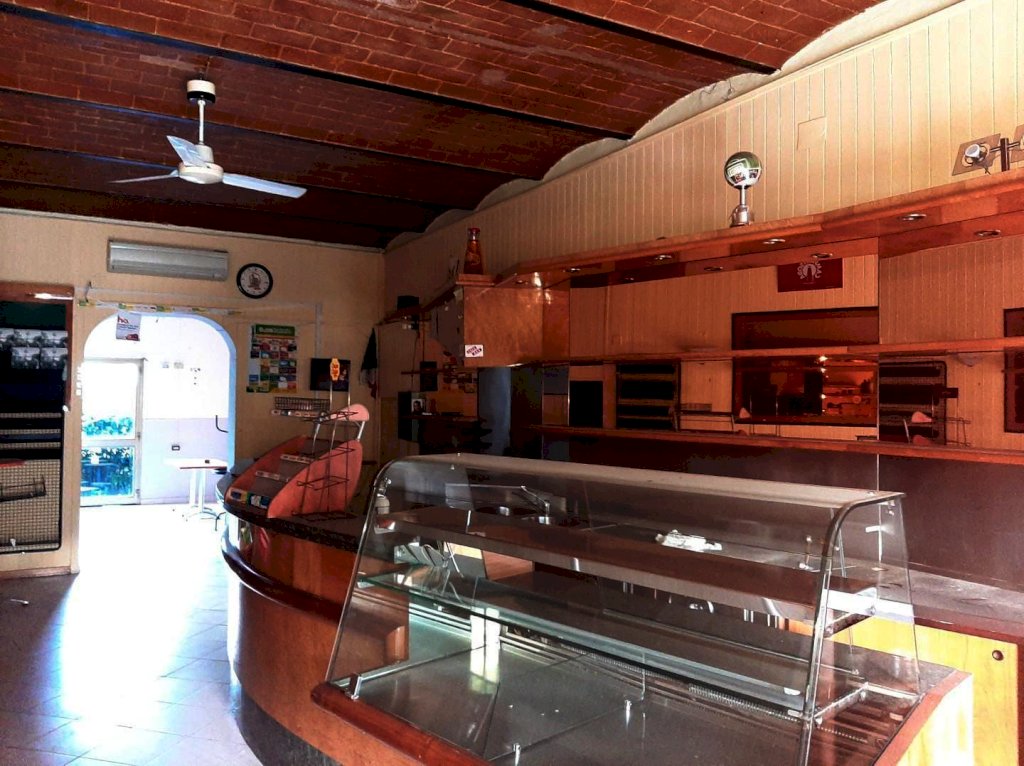 Locale comm.le in affitto con ampia zona vetrina, bancone per bar attrezzato, grandi locali, giardino sul retro,
