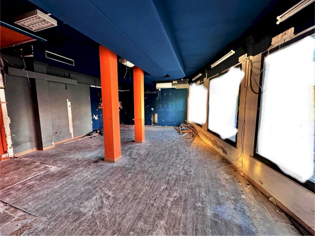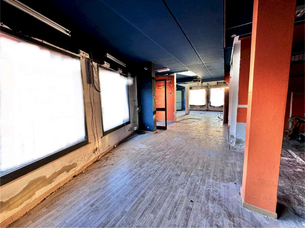 Si affitta luminosissimo locale commerciale FRONTE STRADA di circa 110 mq, con grande parcheggio pubblico adiacente . L'immobile è composto attualmente da unico grande vano, 1 bagno, doppio ingresso e 7 vetrine su due lati.