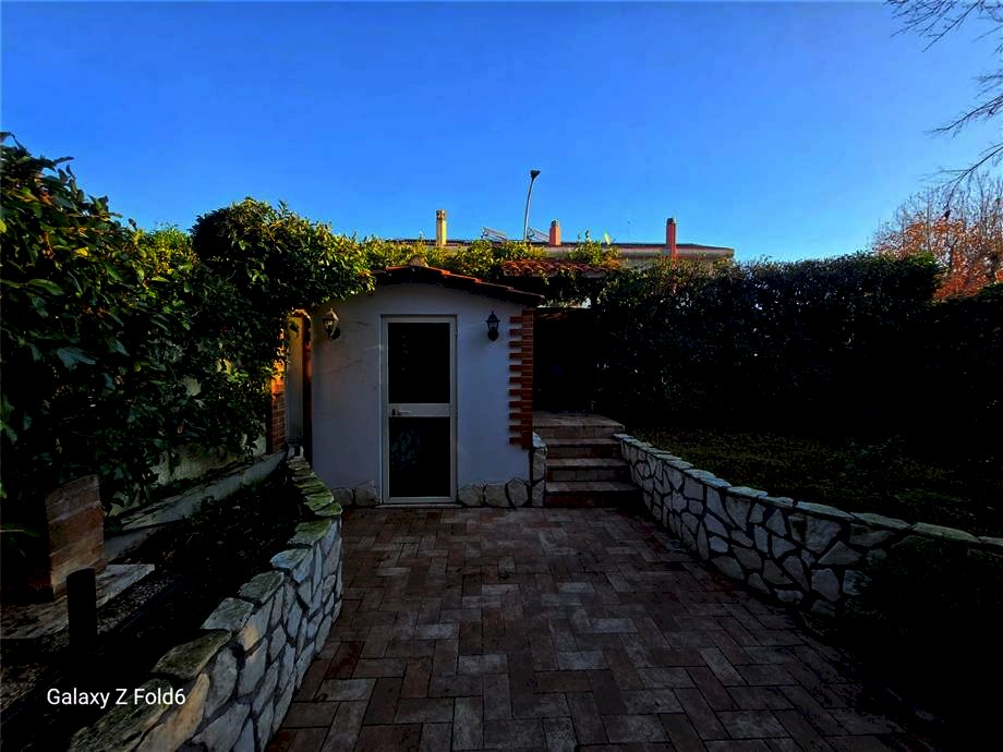 Axa - Via Fanocle: all'interno di un piccolo complesso composto da sole sei unità e senza spese di condominio, è subito disponibile per l'affitto una villa centrale a schiera di circa 185 mq calpestabili interni, così distribuiti: al piano terra giardino frontale di circa 50 mq, soggiorno doppio con camino e cucina abitabile a vista, bagno, ripostiglio sottoscala e giardino retrostante di circa 60 mq; al piano primo ampia sala uso studio con terrazza vivibile, camera matrimoniale con bagno e cabina armadio interna; al piano secondo tre camere di cui due comunicanti tra loro tramite soppalco, doppi servizi. Posto auto interno coperto. Le spese consortili ammontano ad € 750 annui. Non ci sono spese condominiali ad eccezione della luce del vialetto comune e del cancello elettrico. Sono ammessi animali domestici, senza limitazioni di taglia. Il mobilio che non interessa può essere tolto, la cucina è in muratura su misura. Quartiere signorile e ben servito. Affittasi a referenziati con congrui redditi documentabili, contratto concordato 3+2, senza aumenti Istat per l'inquilino. Prezzo richiesto € 2.000, 00 mensili.