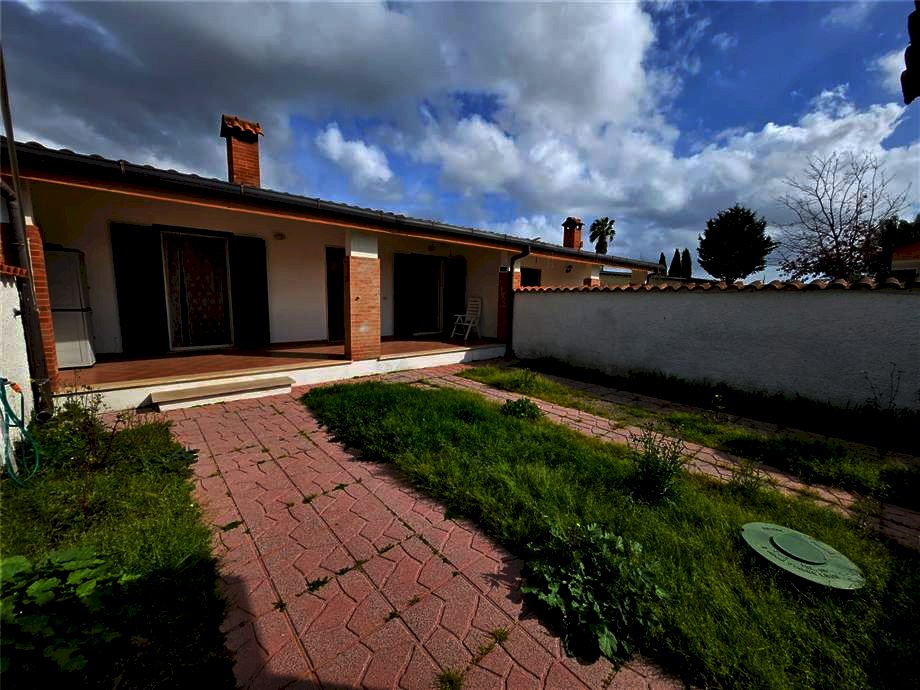 Nuova Palocco - Via Alcamene: villa a schiera articolata su un unico livello al piano terra, della superficie interna di 90 mq circa, composta da salone con camino, cucina abitabile, due camere matrimoniali, doppi servizi, giardino frontale di circa 50 mq e giardino retrostante di circa 35 mq. Sono ammessi animali domestici. Non ci sono spese condominiali né consortili. Affittasi preferibilmente a referenziati con buste paga a tempo indeterminato e congrui redditi documentabili. Libera e visitabile subito. Contratto 3+2 o 4+4, comunque di lunga durata. Su richiesta è disponibile un video dell'immobile.