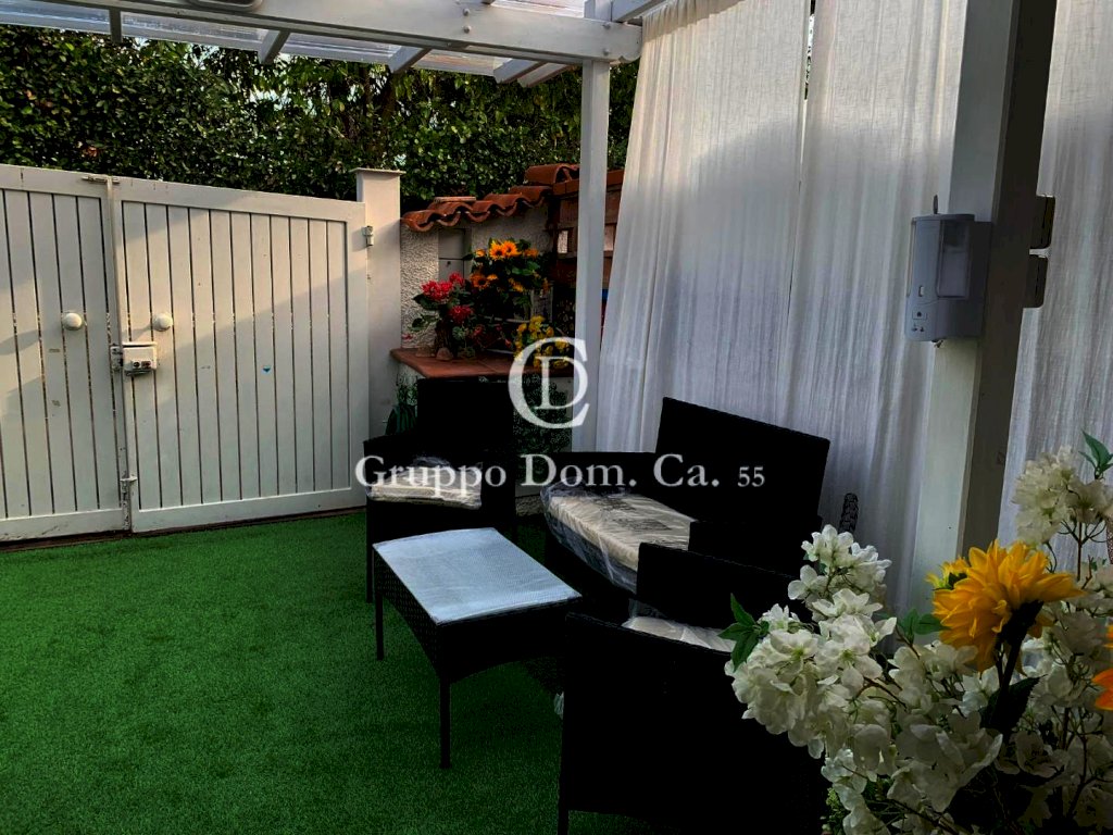 Forte dei Marmi - Centro - Terra tetto a circa 300 mt dal mare, in strada tranquilla e poco trafficata con veranda esterna coperta e attrezzata per pranzi e cene all’aperto. Sviluppata tutta su un piano e al suo interno composta da ingresso su soggiorno e zona pranzo, angolo cottura, disimpegno, due camere da letto e un bagno con doccia.