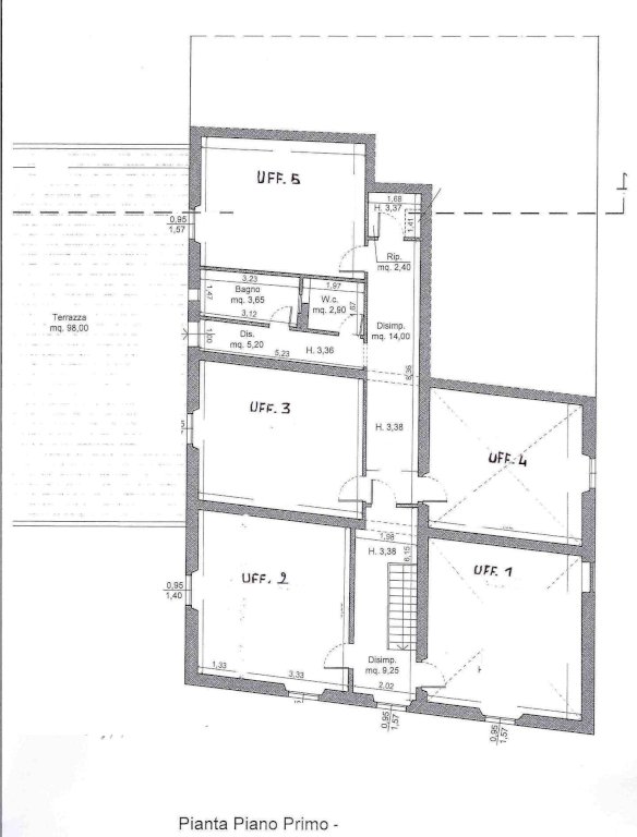 • Stanze private: 5 ampie e luminose stanze ad uso ufficio (circa 25 mq ciascuna).