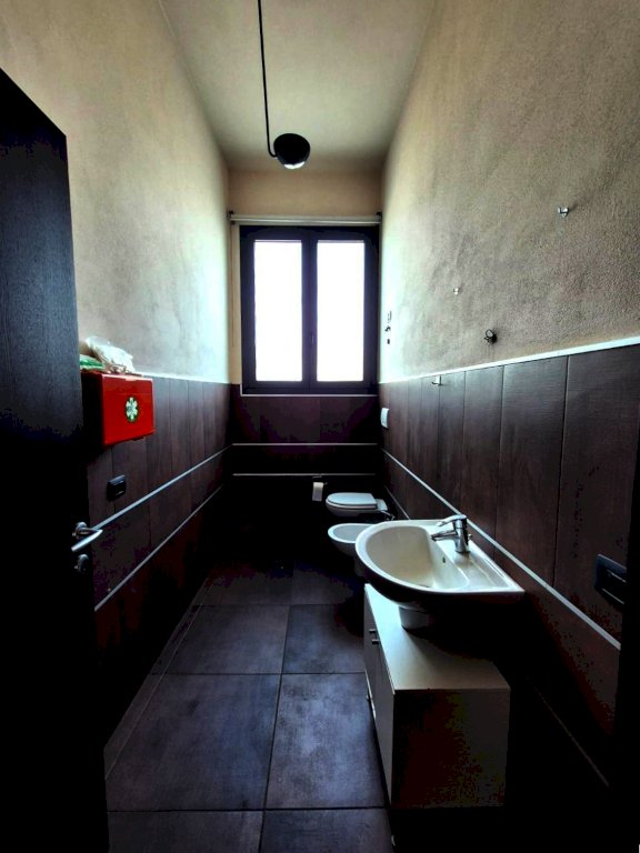 L'immobile si compone di una grande e bellissima zona d'ingresso da cui si accede alle n° 2 stanze uso ufficio; la particolarità di questo fondo è il fatto che sia dotato di una stanza con cucina per attività che ne necessitano o semplicemente per comodità dei lavoratori all'interno. Il bagno è in ottime condizioni ed è conforme alle normative per essere utilizzato come bagno per disabili.