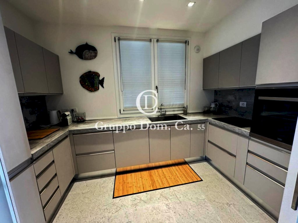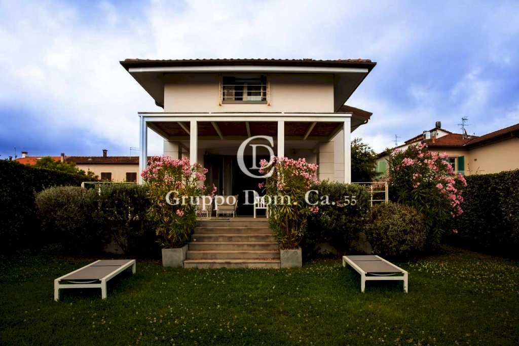 FORTE DEI MARMI - ZONA CENTRO - Porzione di bifamiliare situata in un contesto residenziale tranquillo, a pochi passi dal centro e dal mare, con facile accesso a tutti i principali servizi. L'immobile, distribuito su tre livelli, si presenta in ottime condizioni ed è arredato con cura e attenzione ai dettagli. Al piano terra l'ingresso conduce a una cucina moderna dotata di vetrata scorrevole, che può essere chiusa all'occorrenza, a una zona pranzo arredata con un elegante tavolo rotondo per sei persone, un bagno di servizio, un pratico ripostiglio e un luminoso soggiorno con accesso diretto, tramite porta finestra, a una splendida veranda che affaccia sul giardino, attrezzata con tavolo e divani, ideale per pranzi e cene all'aperto e per i momenti di relax. Al piano primo troviamo la zona notte che comprende due camere matrimoniali, entrambe dotate di bagno en-suite, e una terza camera matrimoniale con bagno situato nel corridoio. Il livello seminterrato ospita un ampio ambiente open-space adibito a sala con angolo cottura, una spaziosa camera matrimoniale e un bagno con doccia.