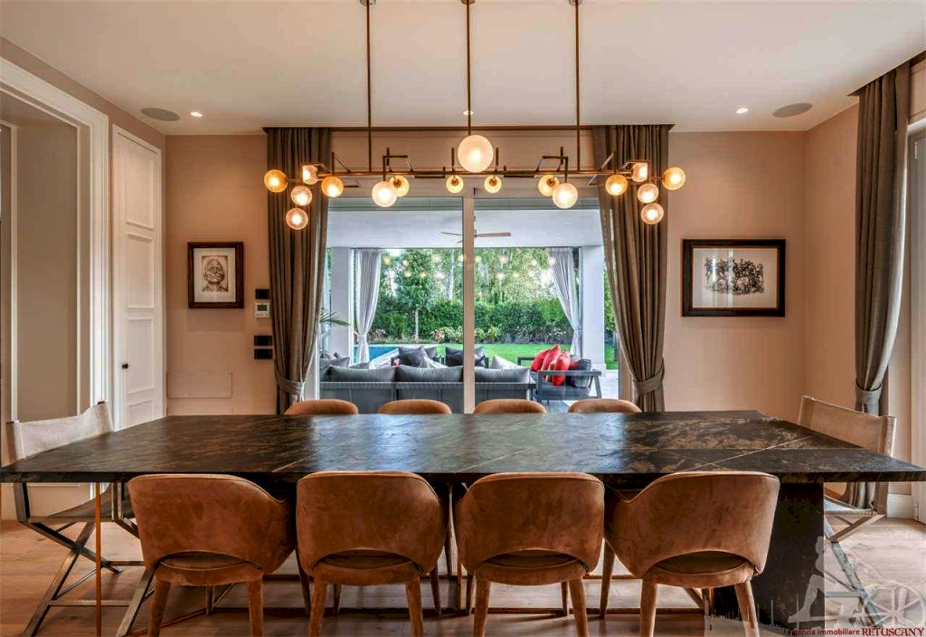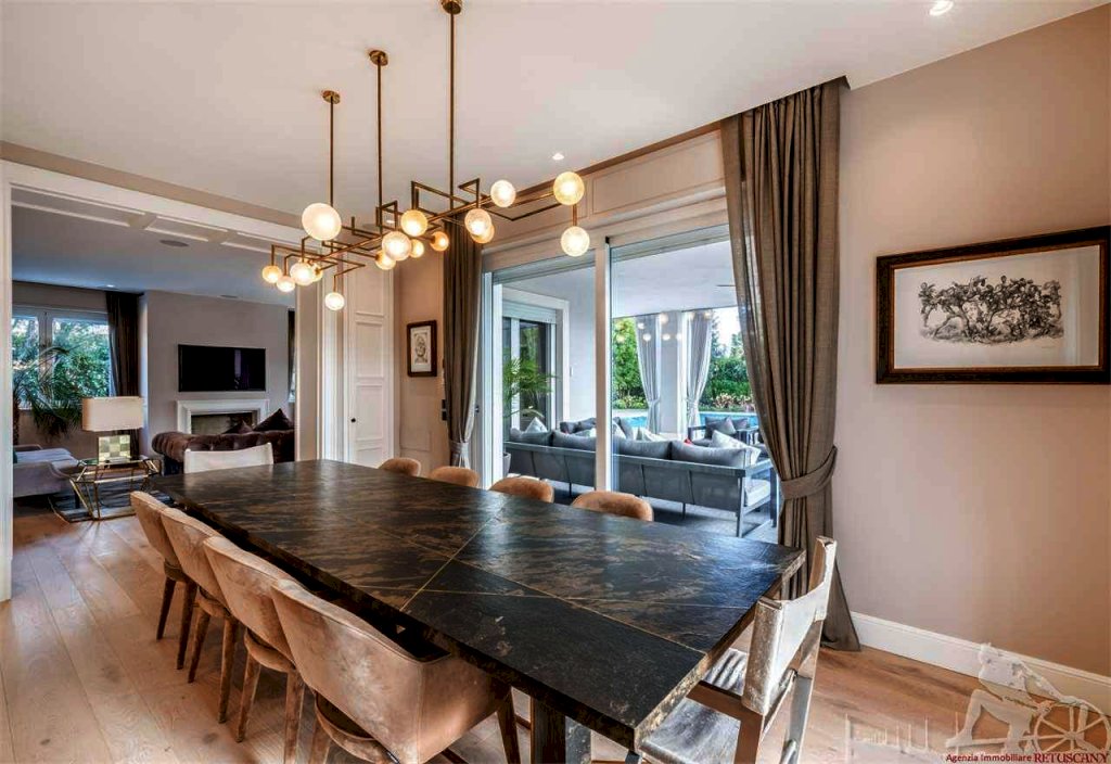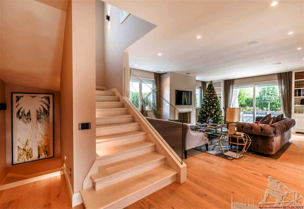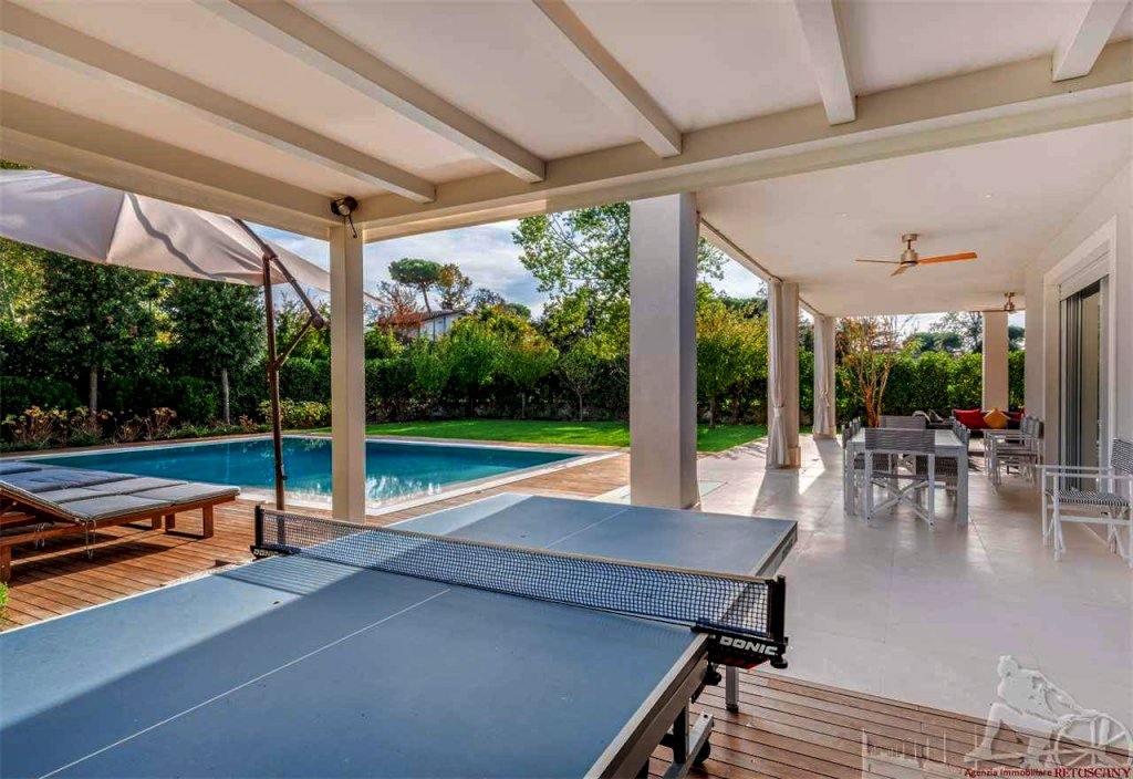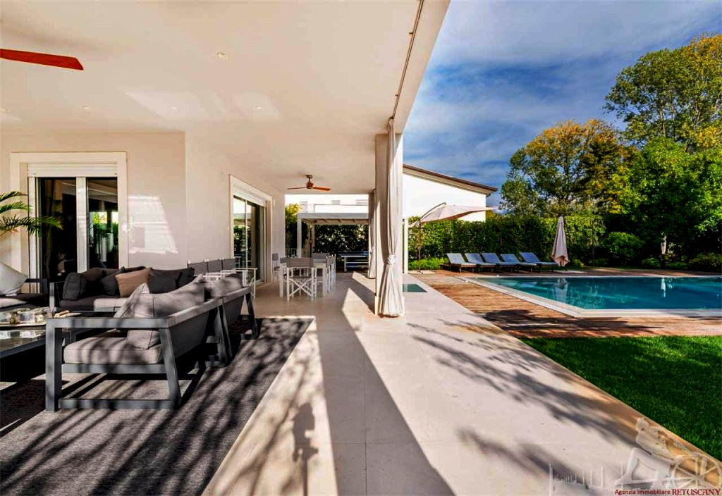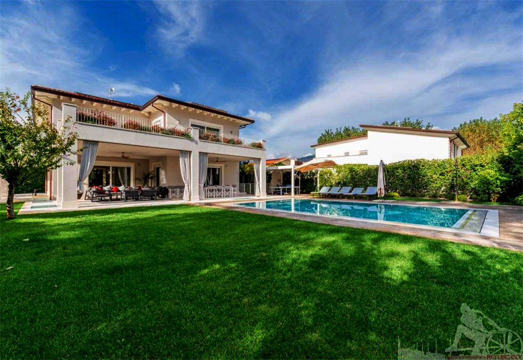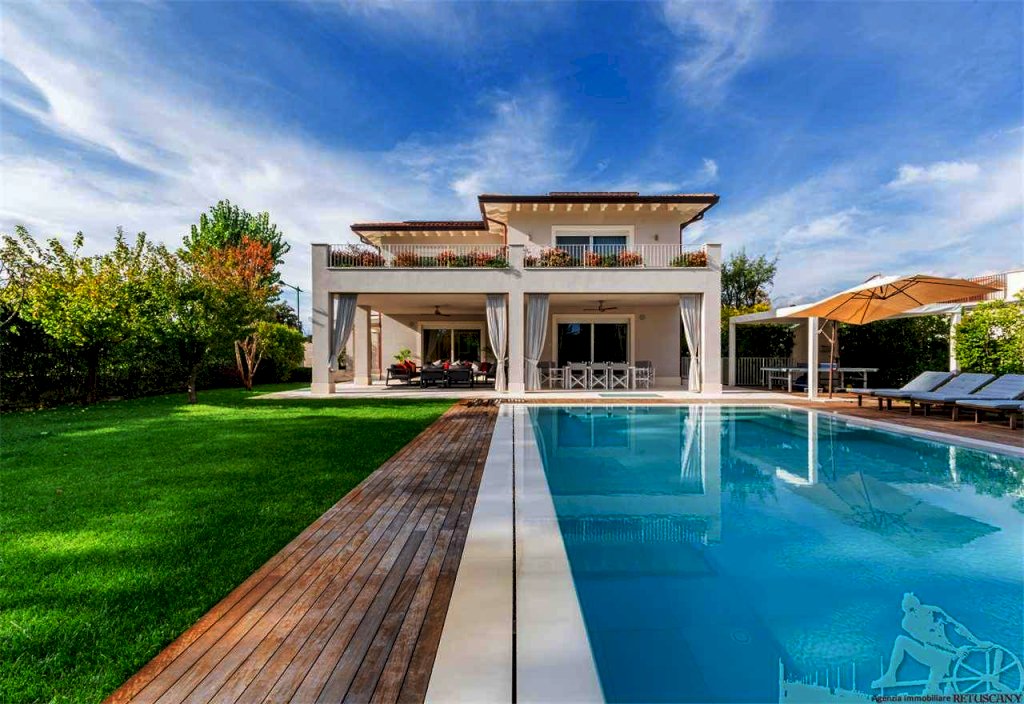 Villa singola con piscina, distribuita su due piani fuori terra oltre all'interrato, con giardino esclusivo e posti auto interni alla proprietà. Abitazione di circa 335 mq oltre a circa 225 mq di interrato, lotto di circa 1.105 mq, distanza dal mare 750 metri. Al piano terra: soggiorno doppio, pranzo, cucina abitabile, bagno di servizio. Al piano primo: camera matrimoniale con doppio bagno e doppio vano armadi, due camere matrimoniali con bagno privato. Al piano interrato: cantina, due camere matrimoniali con bagno privato, piscina interna, zona fitness e zona spa, oltre ad un appartamento completo per il personale di servizio.