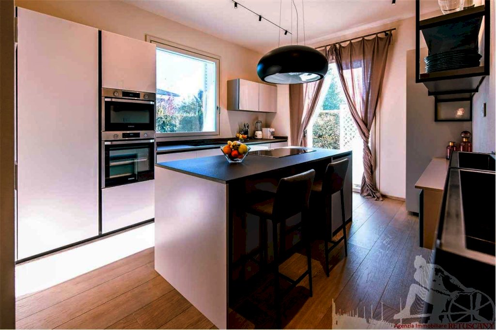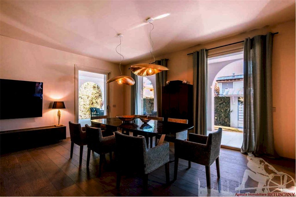 Villa con piscina e giardino esclusivo con posti auto interni alla proprietà. Distanza dal mare circa 1.100 metri. Al piano terra: soggiorno pranzo, cucina abitabile, porticato per il pranzo e il soggiorno all'aperto, camera matrimoniale, bagno, disimpegno. Al piano primo: tre camere matrimoniali con bagno privato, disimpegno. Al piano interrato: lavanderia e vano con divano letto. Con impianti di aria condizionata, allarme, internet.