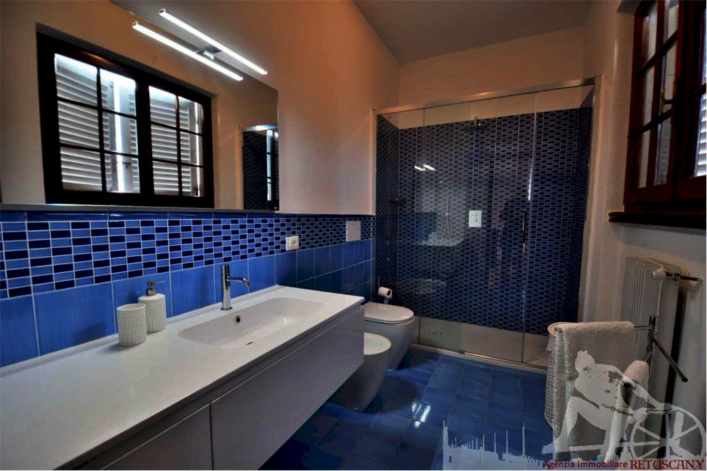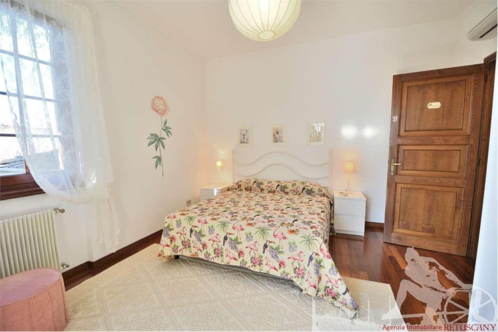 Villa singola con ampio giardino, distribuita su più livelli. Abitazione di circa 300 mq, lotto di circa 2.000 mq, distanza dal mare circa 1.100 metri. Al piano terra e terra ribassato: soggiorno pranzo, cucina abitabile, camera singola, bagno con doccia, lavanderia. Al piano primo e ammezzato: due camere matrimoniali con bagno vasca, camera matrimoniale, camera doppia, bagno con doccia. Con impianto di allarme, aria condizionata, internet wi-fi.