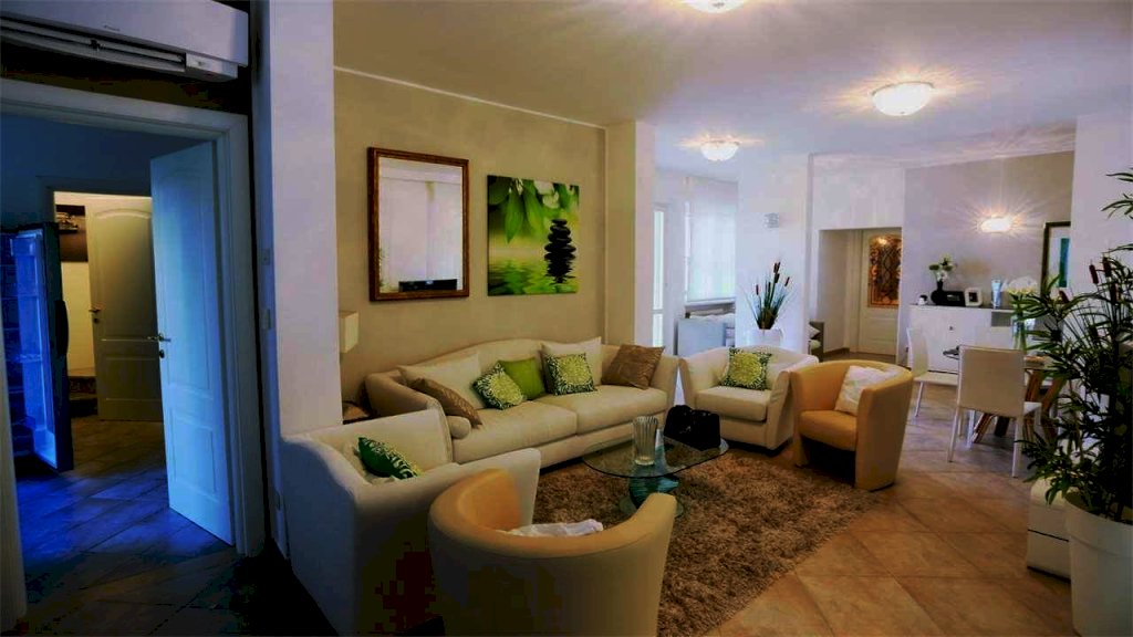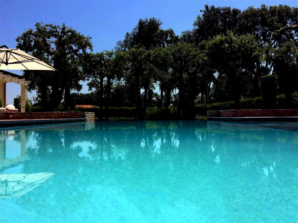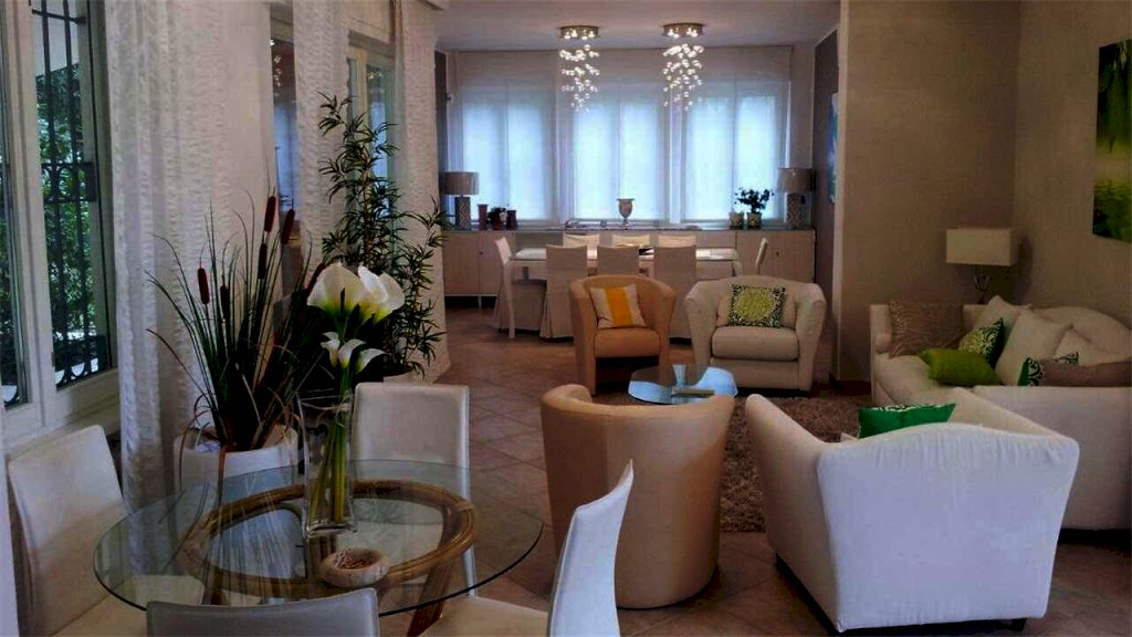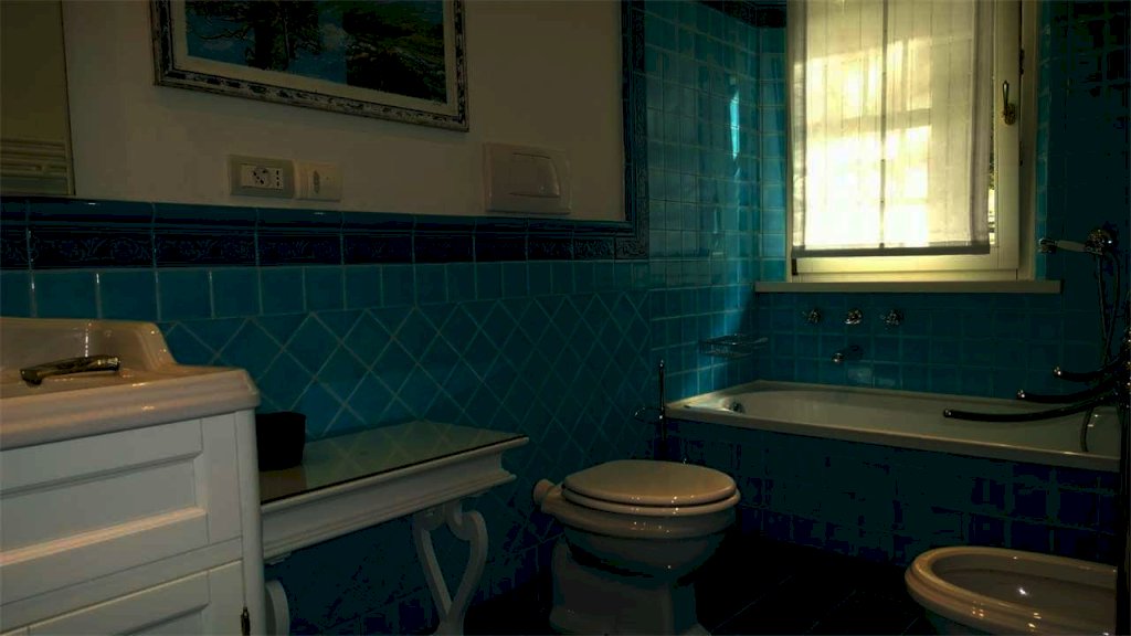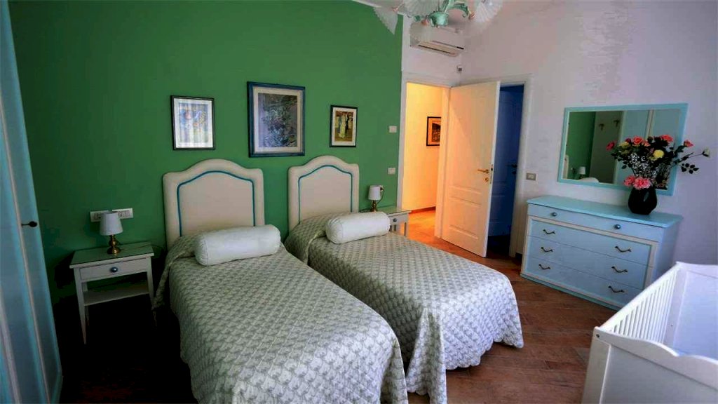 Villa su un unico piano con ampio giardino e piscina riscaldata con impianto idromassaggio. Lotto di circa 2.500 mq, distanza dal mare circa 650 metri. Composta da: ingresso da porticato attrezzato per il soggiorno e il pranzo all'aperto, soggiorno, pranzo, cucina abitabile, quattro camere matrimoniali con bagni privati, camera di servizio, bagno. Con garage e lavanderia. Aria condizionata, allarme, internet, zanzariere, cancello automatico.