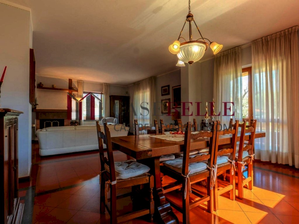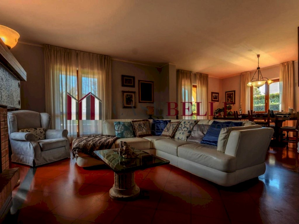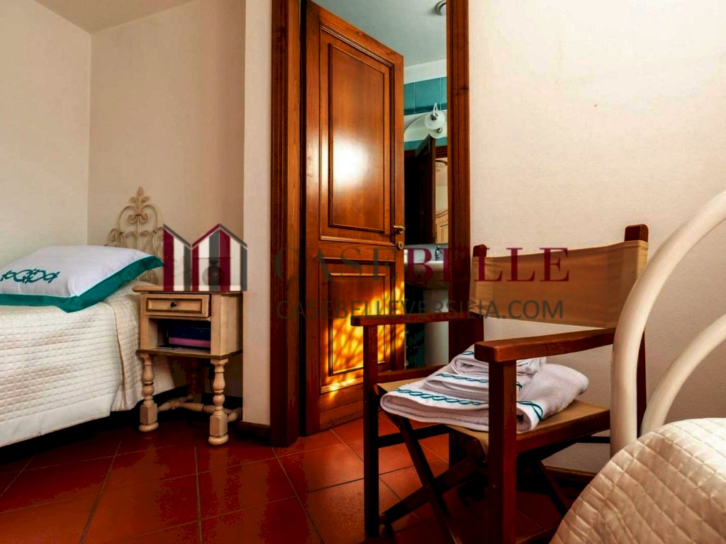 La proprietà, in condizioni eccellenti, si sviluppa su circa 240 mq e accoglie fino a dieci ospiti in ambienti ampi, luminosi e finemente arredati in elegante stile classico, con mobili di alta qualità e dettagli curati. La zona giorno si distingue per un grande soggiorno affacciato sul verde, ideale per momenti di relax e convivialità, affiancato da una cucina spaziosa e completamente attrezzata, funzionale e perfetta anche per soggiorni prolungati. Sempre al piano terra troviamo una camera doppia con bagno privato, un bagno di cortesia, una comoda lavanderia e il garage interno.