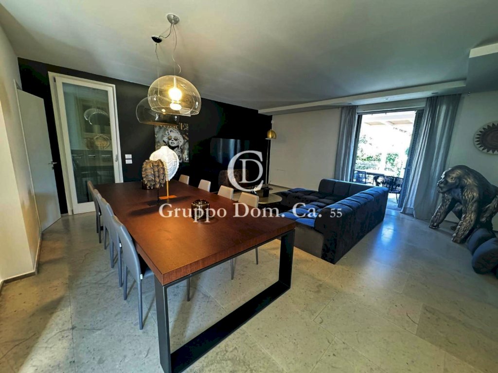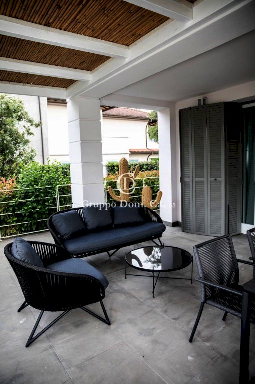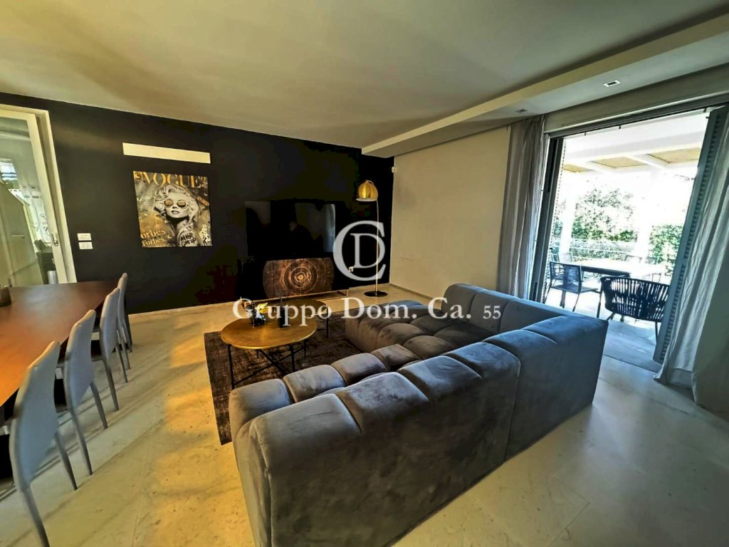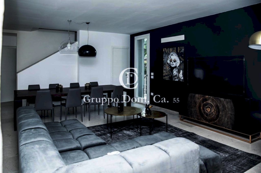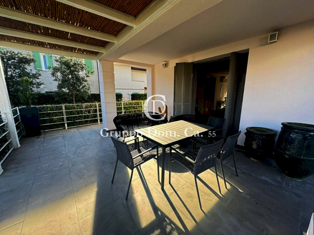 FORTE DEI MARMI - CENTRO - Porzione di bifamiliare situata in un contesto residenziale tranquillo, a pochi passi dal centro e dal mare, con facile accesso a tutti i principali servizi. L'immobile, distribuito su tre livelli, si presenta in ottime condizioni ed è arredato con cura e attenzione ai dettagli. Al piano terra l'ingresso conduce a una cucina moderna dotata di vetrata scorrevole, che può essere chiusa all'occorrenza, una zona pranzo arredata con un elegante tavolo in legno, un bagno di servizio, un pratico ripostiglio e un luminoso soggiorno con accesso diretto, tramite porta finestra, a una splendida veranda che affaccia sul giardino, attrezzata con tavolo e divani, ideale per pranzi e cene all'aperto e per i momenti di relax. Al piano primo troviamo la zona notte che comprende due camere matrimoniali, entrambe dotate di bagno en-suite, e una terza camera doppia con bagno. Il livello seminterrato ospita un ampio ambiente open-space adibito a sala con angolo cottura, una spaziosa camera matrimoniale e un bagno con doccia.
