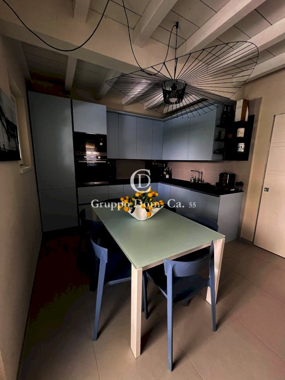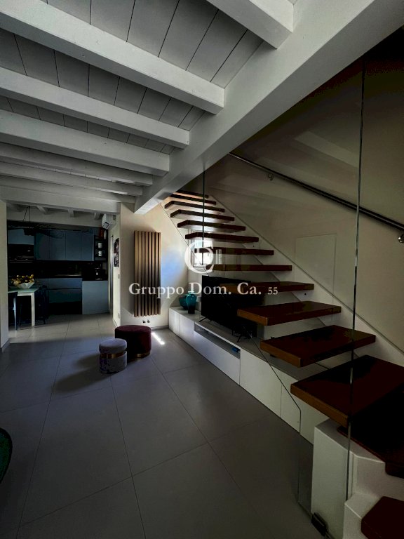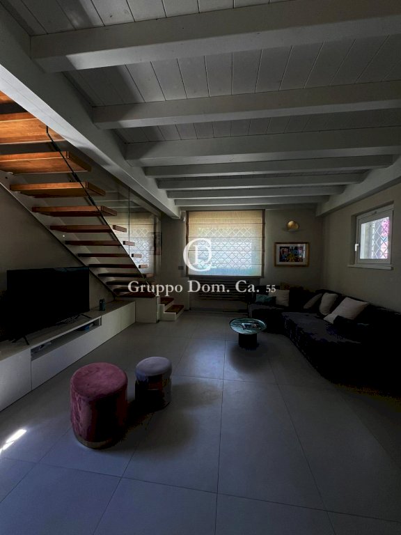 All'interno presenta un ampio soggiorno arredato con gusto e caratterizzato da un design moderno e funzionale. La cucina abitabile, completamente attrezzata, è separata dal soggiorno e collegata a una veranda pranzabile attraverso una porta finestra. Al piano terra si trovano anche un bagno di servizio e un comodo ripostiglio.